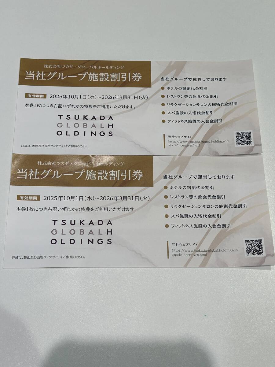 ツカダグローバルホールディング グループ施設割引券 2枚 有効期限2026年3月31日