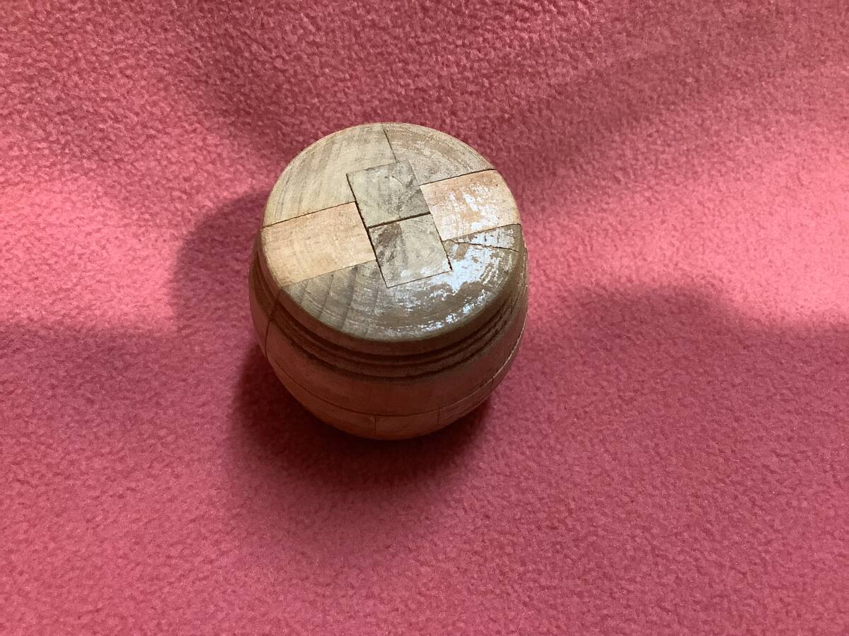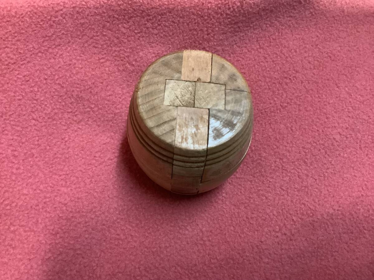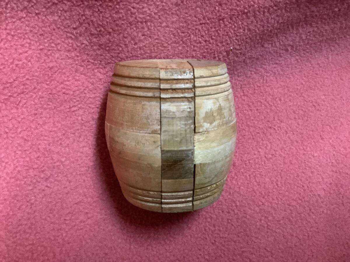 古い樽型ウッドパズル 立体パズル 組木 高さ4.5