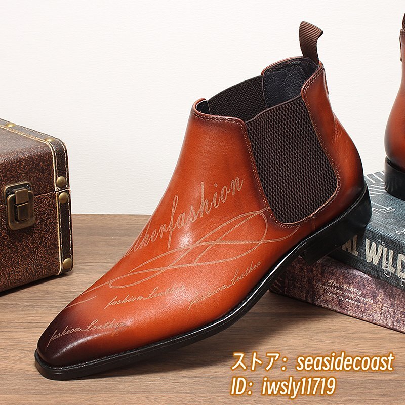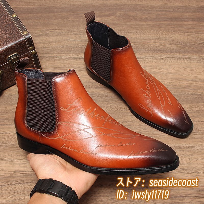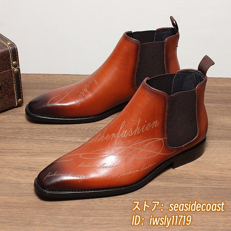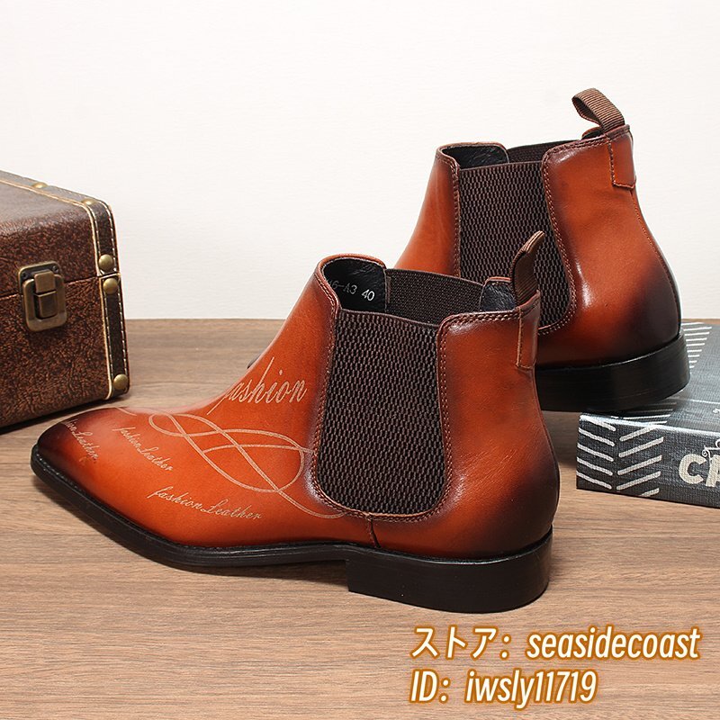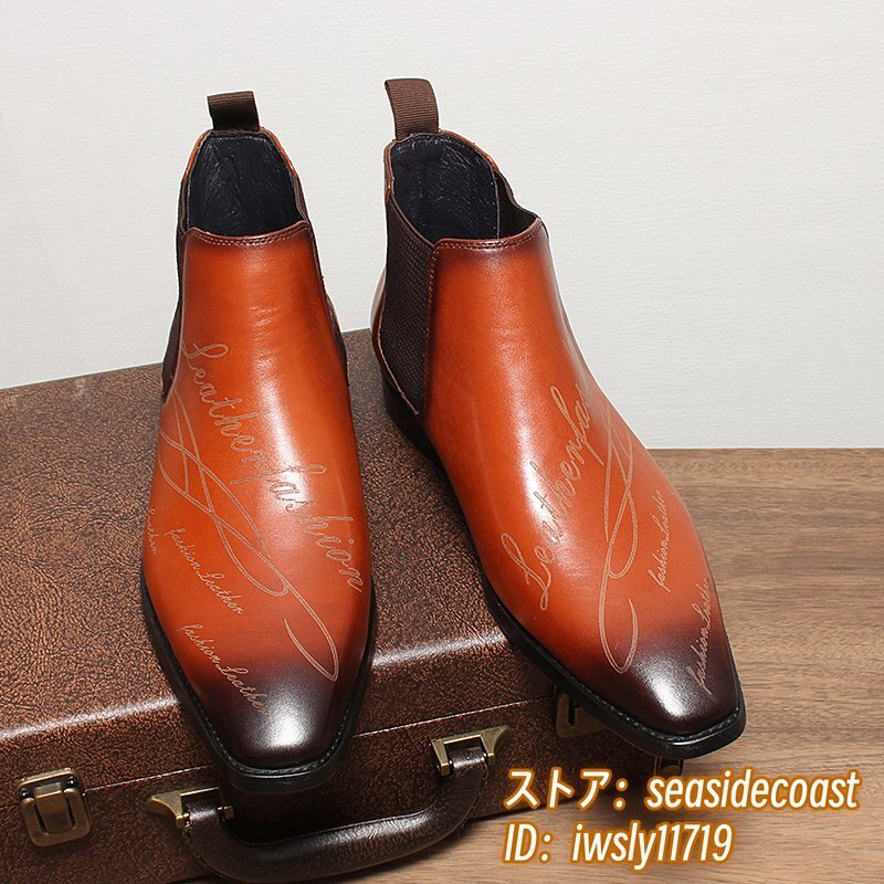 定価12万*最上級 マーティンブーツ 職人手塗り上げ 彫り 高級牛革 イギリス風 レザーブーツ ショートブーツ 皮靴 紳士靴 ブラウン 25.0cm