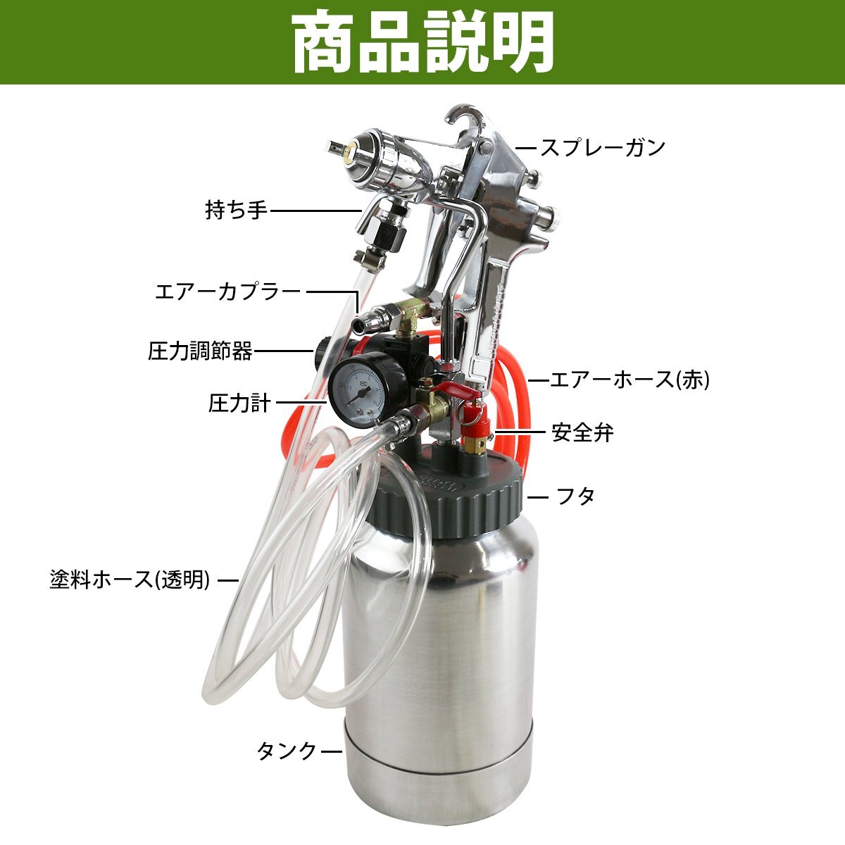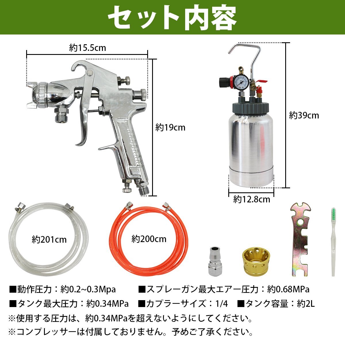 加圧式 エア スプレー ガン ノズル径 2.0mm 2L 圧力計 付 エアー 圧送ガン 塗装 ペイント ツール 建設機械 トラック DIY