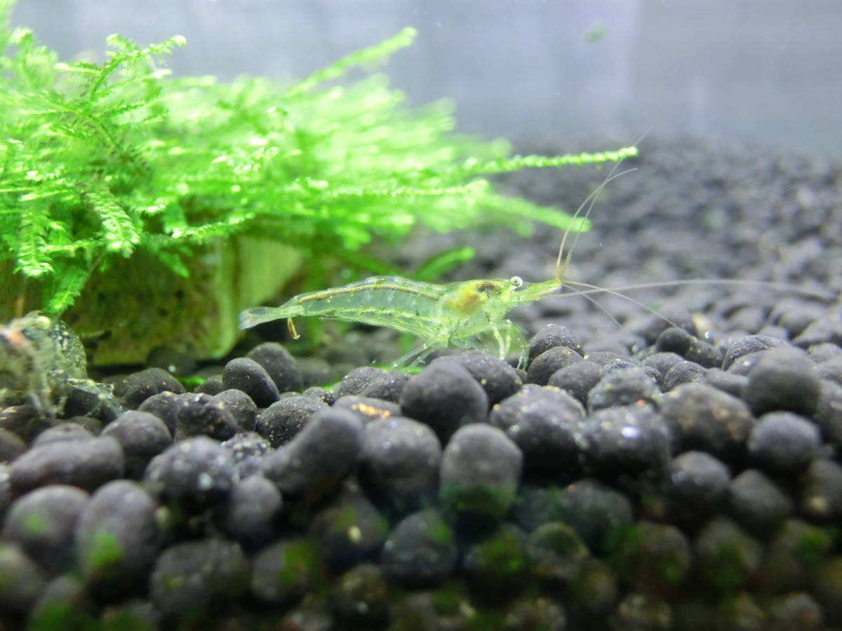 ミナミヌマエビが水槽内でツマツマしている姿はとてもかわいいです。