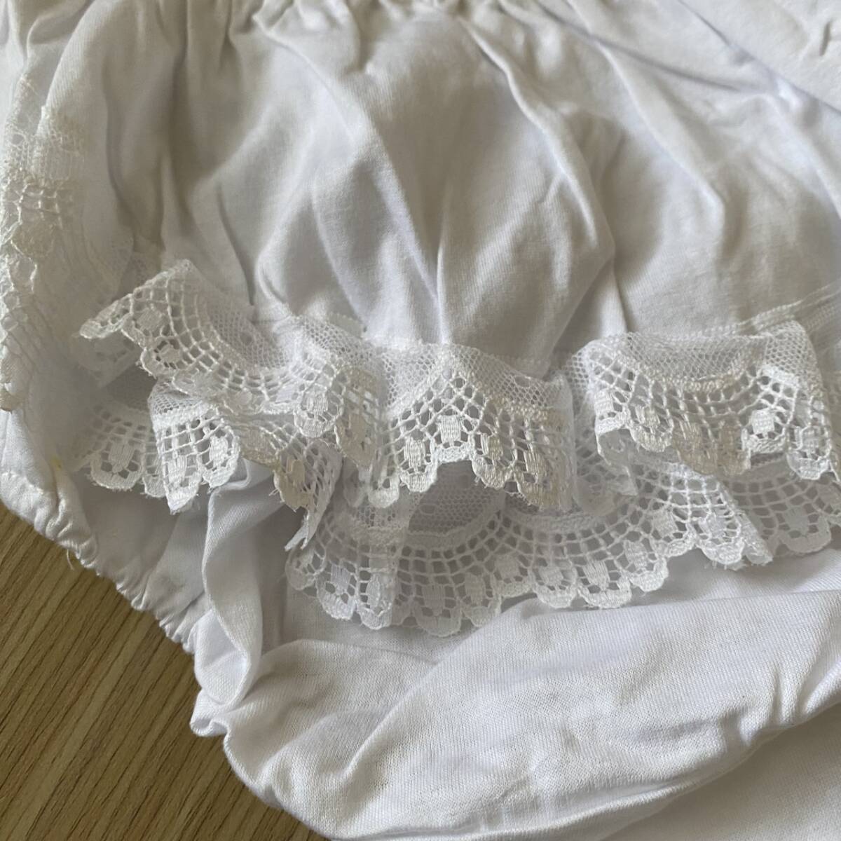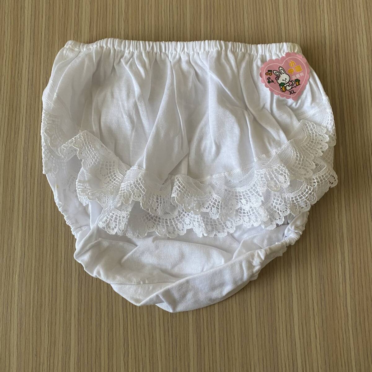 | 綿 100% 後ろに可愛い2段レース付き ※130~140cm用ですが、若干大き目かもしれません ■ 台湾製 ■ 長期保管品です(小さなシミが見られます) | |||