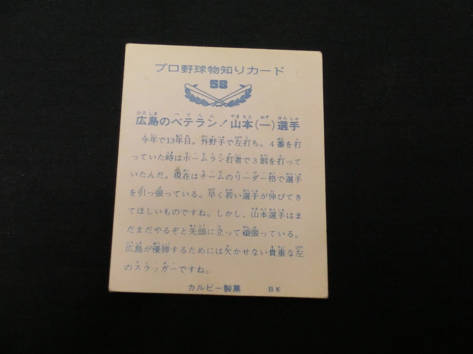 ■カルビー プロ野球カード 昭和48(1973)年 バットNo.58 山本(一)選手■