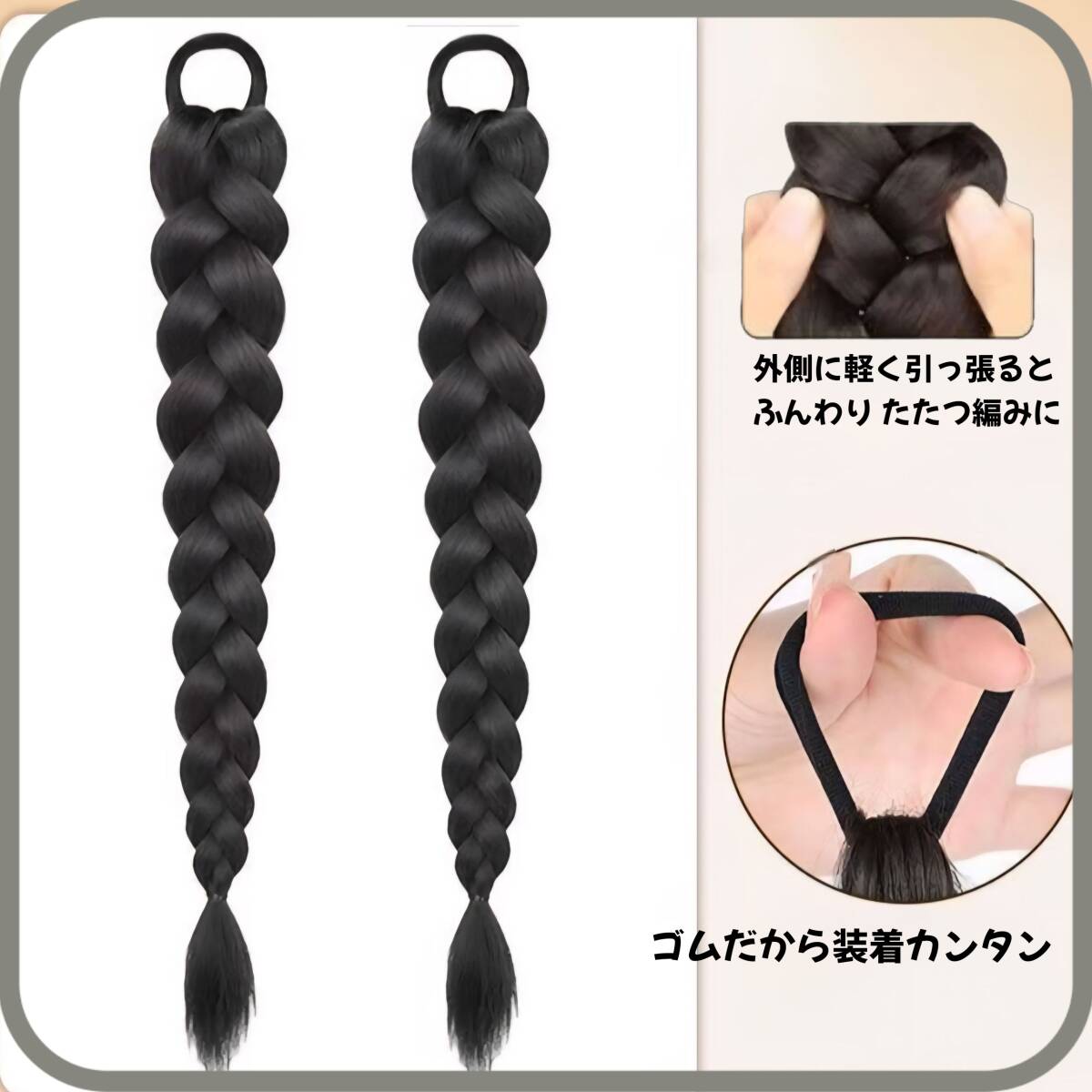 つけ毛 三つ編みウィッグ 結ぶだけ エクステ シニヨン 韓国 ハロウィン ゴム 黒