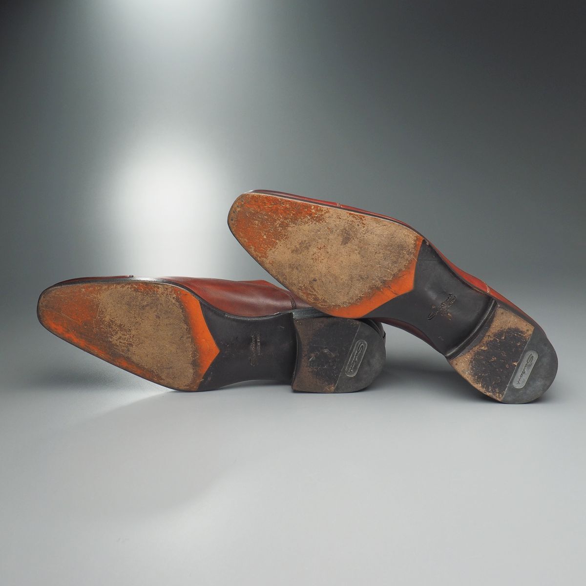 イタリア靴の中でも歴史の浅いシューメーカーながら、その評価は100年を超える老舗にも等しいとさえ言われる名門「Santoni/サントーニ」の一足です。 柔軟性があり、深みのあるアンティークカラーで彩られた茶のスムース革で構成。 コバをコンパクトに抑えたスマートなフォルムデザインで上品で色気のある印象。 オン・オフ問わずマルチな活躍が期待されます。 製法:マッケイ アウトソール:レザー(ヒドゥンチャネル/半カラス仕上げ) トップリフト:レザー×ラバー ライニング:レザー 生産:イタリア製 ※撮影用のシューキーパーは付属致しません。 ※本物の商品ですのでご安心の上オークションをお楽しみ下さい。 ※タイトル頭の英数字は弊社の管理番号です。 ※ほかにも多数の商品を出品しています。 ※同梱に関しましては「まとめて取引」でのみ対応可能です、その他の方法での同梱対応は出来かねます。 (※商品の特性上、同梱対応出来ない商品もございますので予めご了承下さい。) |