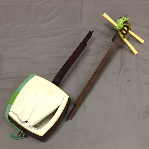 三味線 細棹 丸内胴 全長約97.5cm 皮破れあり ケース付き 楽器 和楽器 日本楽器 現状品 |