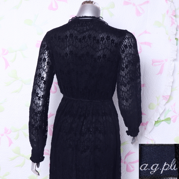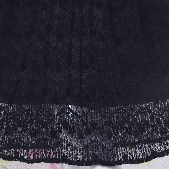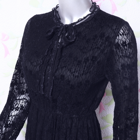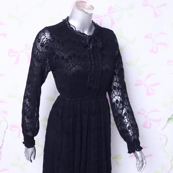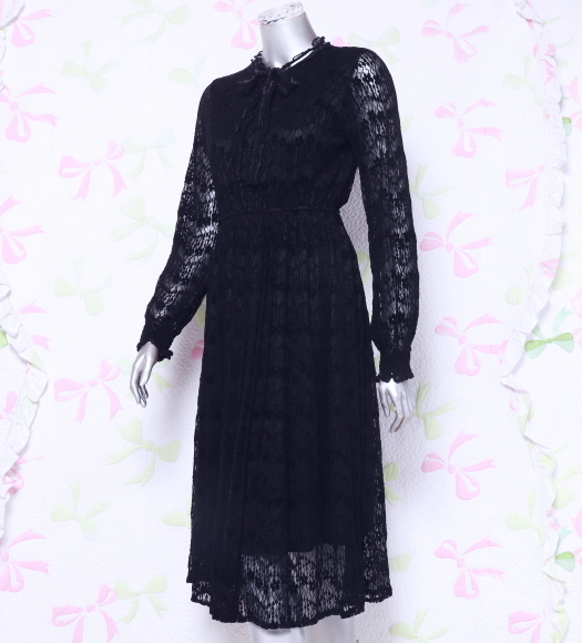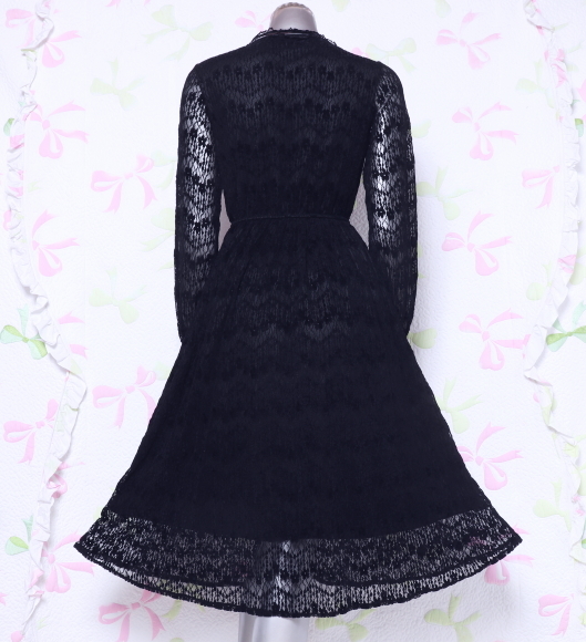 備考:洗濯可・柄織りのネット生地と伸縮性の有る裏生地使用・袖部分裏生地なし・ウエストにゴム使用・胸元でリボン結び・ファスナーのないタイプです。