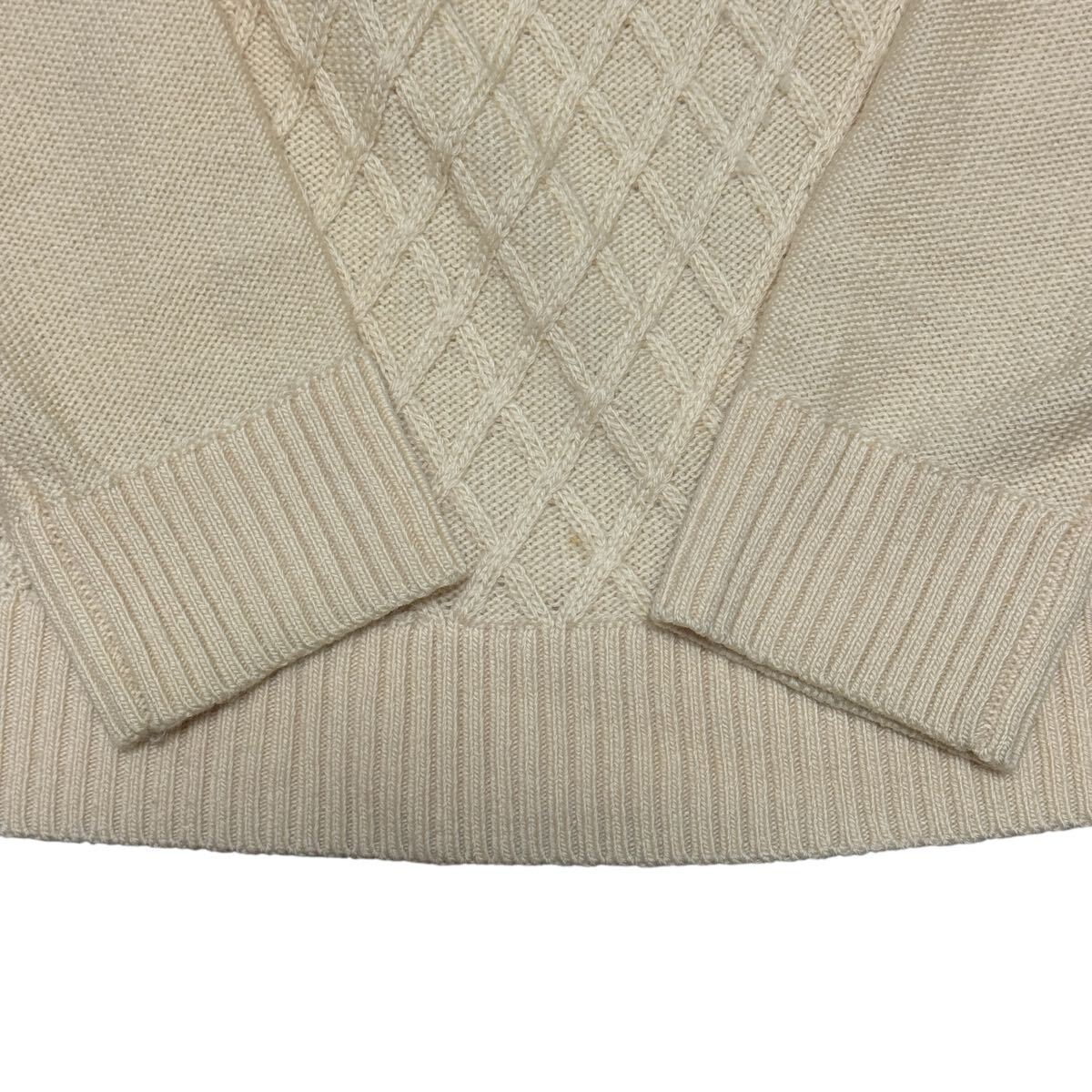 柔らかく滑らかなウール100%素材を使用し、胸元はダイヤ柄×ワッフル編みのコンビデザイン。シンプルながら高級感のある一着に仕上がっています。
