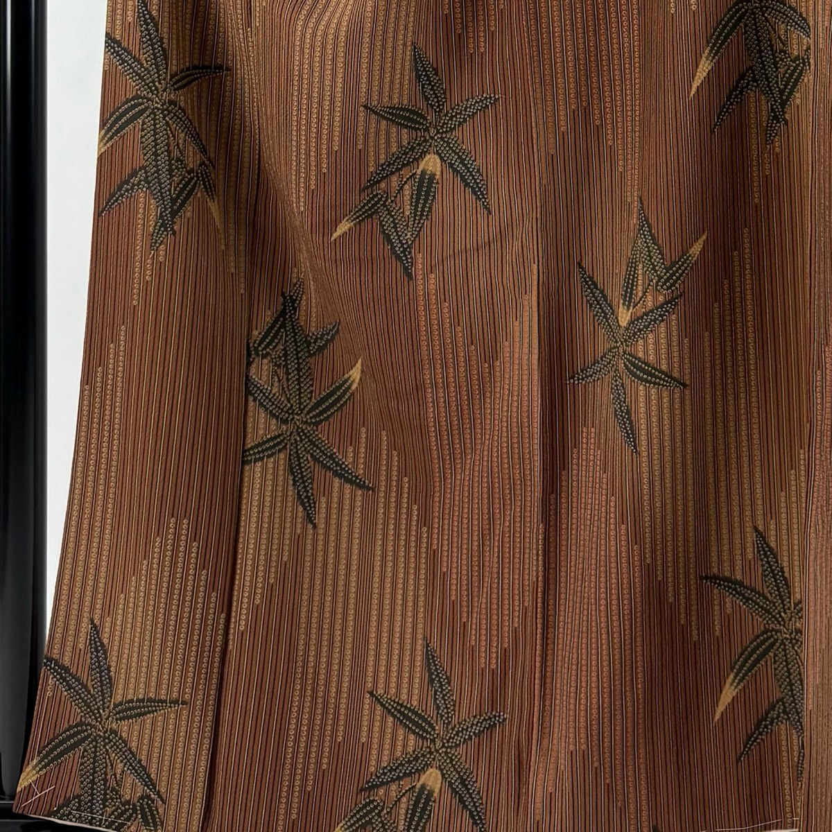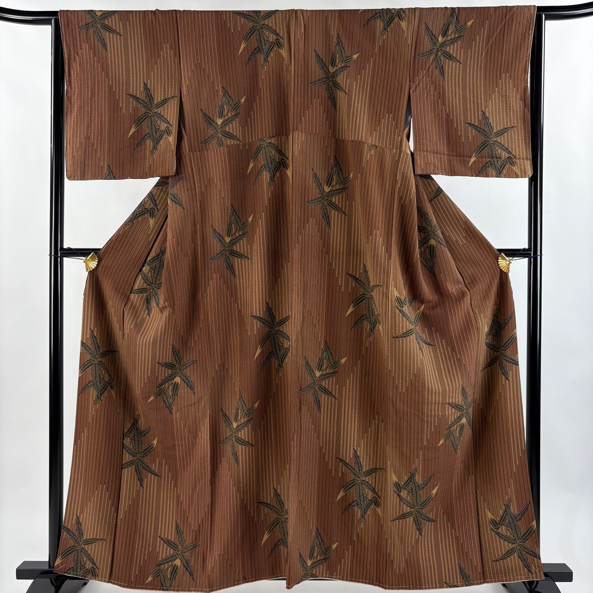 | 小紋 美品 秀品 笹 縦縞模様 茶色 袷 身丈159 裄丈65.5 M 正絹 【中古】 |