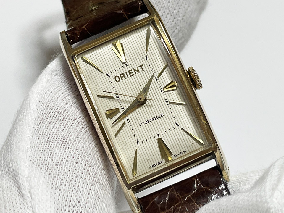 『ORIENT オリエント 17石 スクエア 金張り 60年代 手巻き 稼働 ヴィンテージ メンズ腕時計』です。