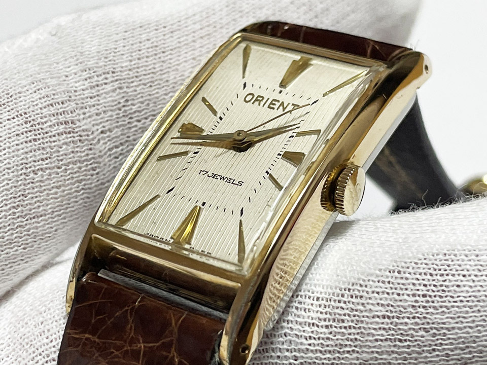 ORIENT オリエント 17石 スクエア 金張り 60年代 手巻き 稼働 ヴィンテージ メンズ腕時計