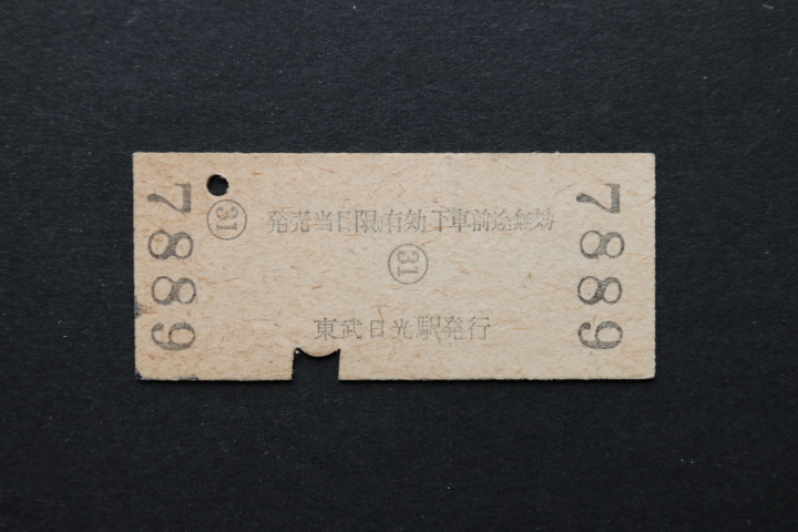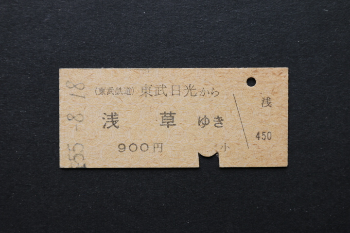 東武鉄道 乗車券 東武日光から 浅草ゆき 900円