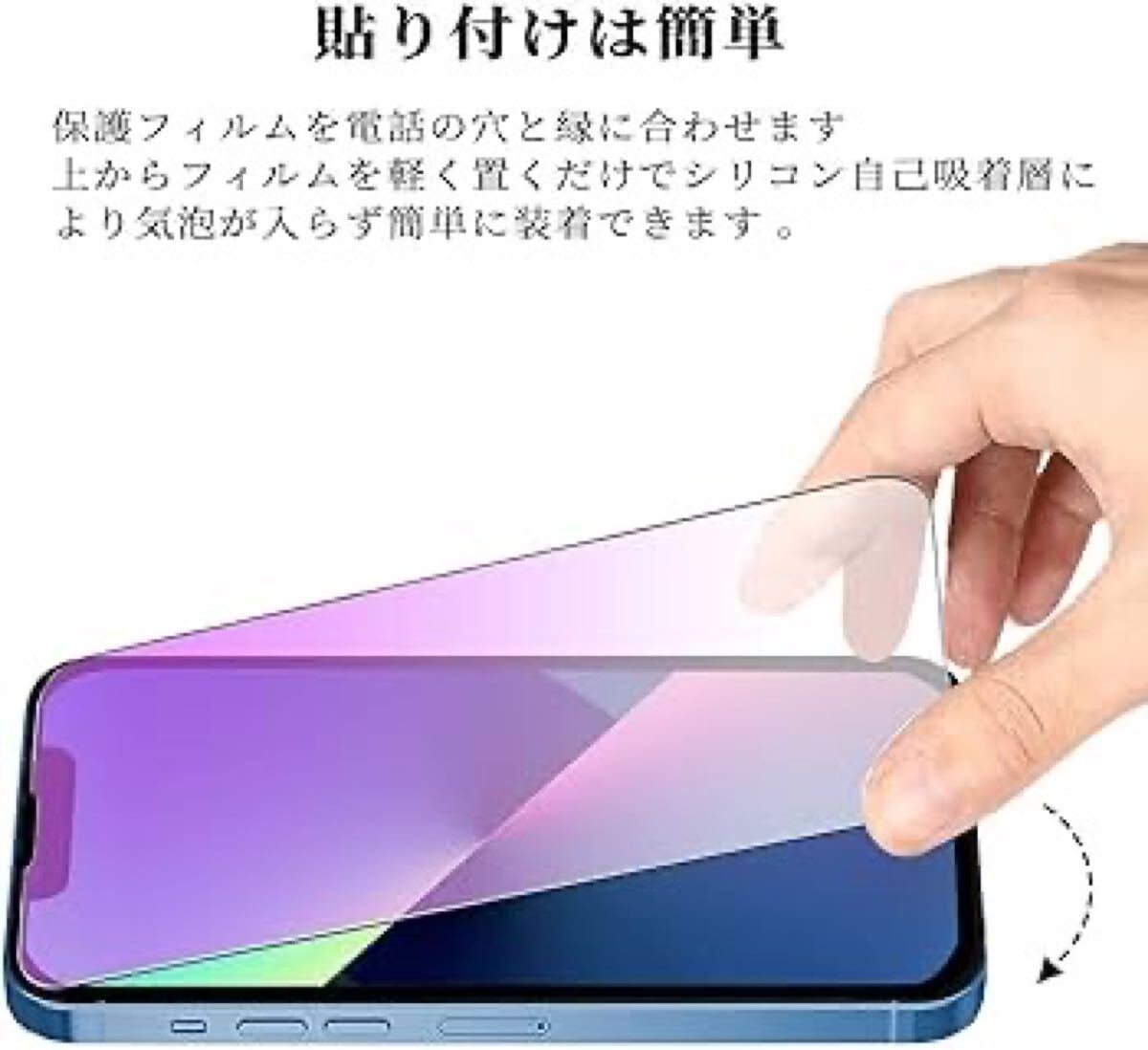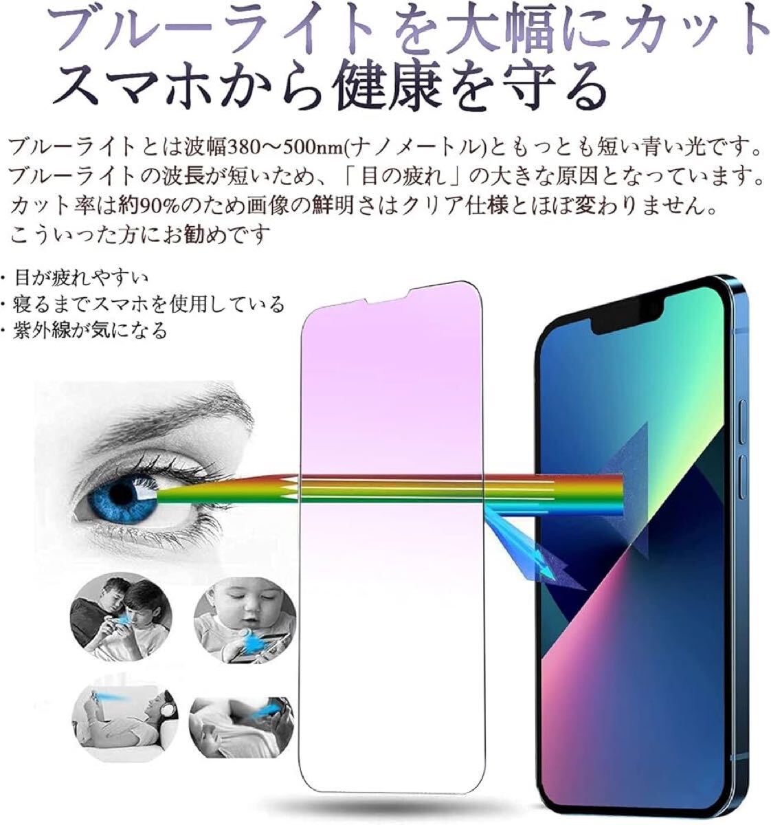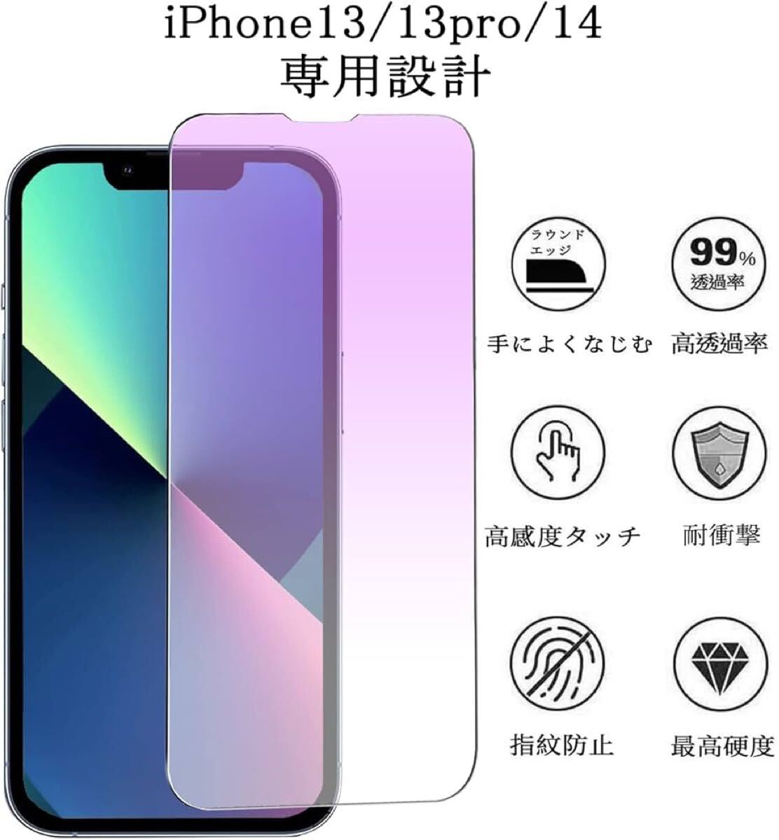 【ブルーライトカット】 iPhone14 / iPhone13 / iPhone13 Pro 用 ガラスフィルム ブルーライト フィルム 液晶保護 アイフォン 13 / 13Pro / 14 用 強化ガラス 保護ガラス 【指紋防止/気泡ゼロ/干渉しない/貼り付け簡単/2枚セット】