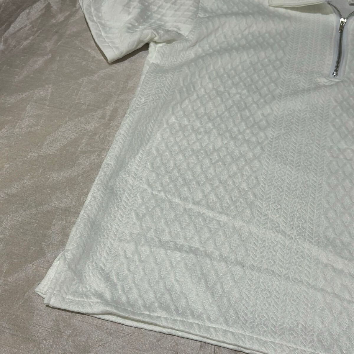セットアップ 上下セット ルームウェア 部屋着 夏服 Tシャツ ハーフジップ 白 ホワイト XL