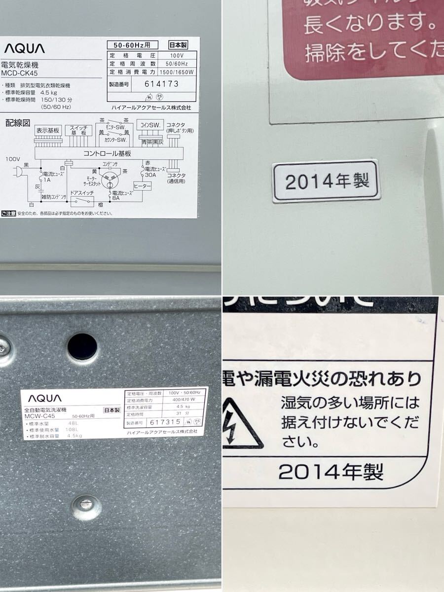 ★☆業務用 AQUA/アクア コインランドリー 洗濯機: MCW-C45/乾燥機:MCD-CK45専用架台付 金額設定可能