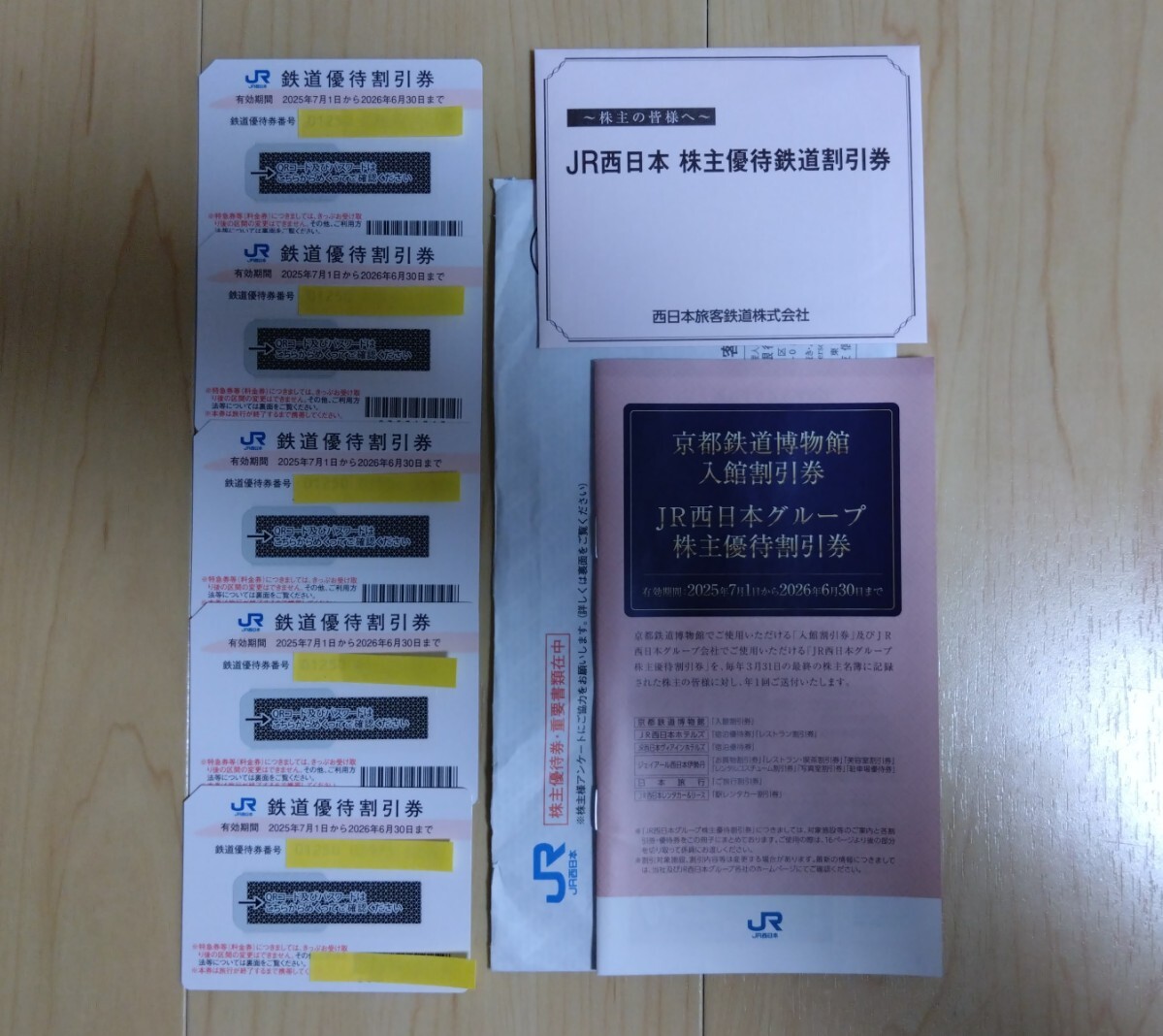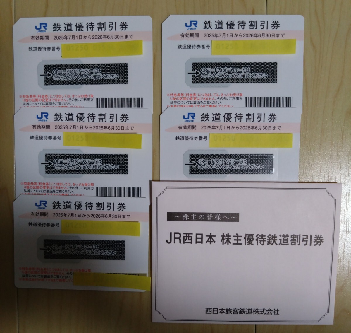 JR西日本株主優待鉄道割引券5枚と、グループ優待割引券冊子1冊のセット出品です。送料無料