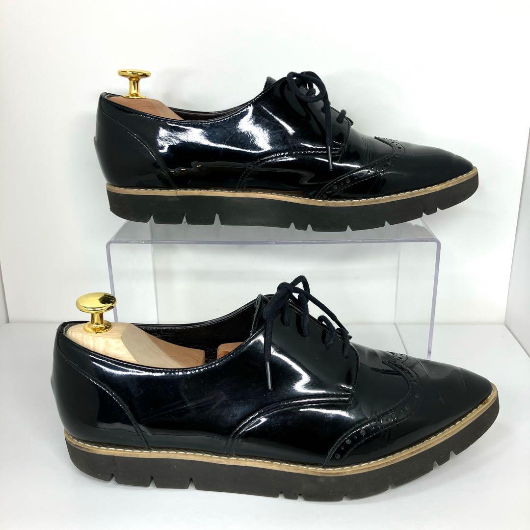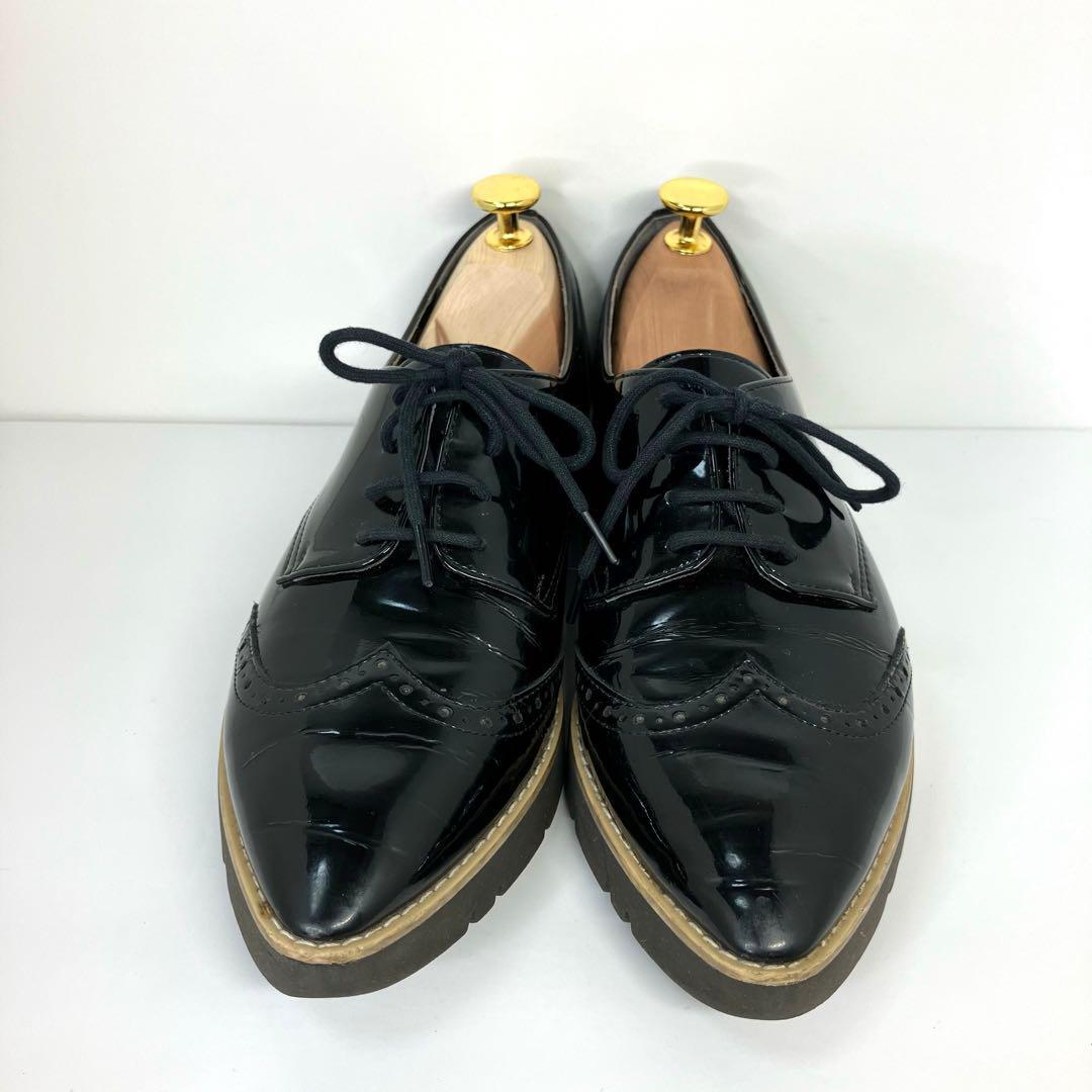 光沢感のあるエナメル素材を使用したレースアップシューズです。