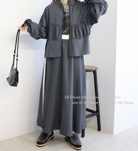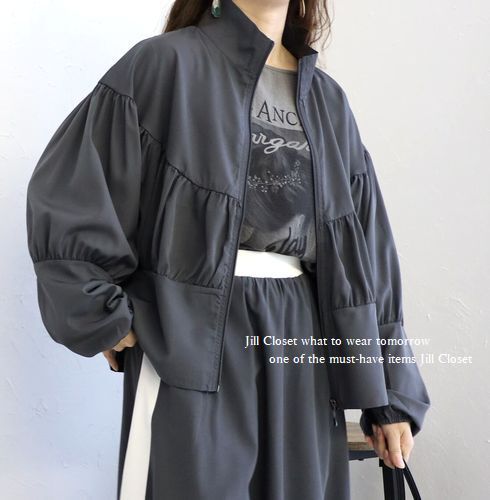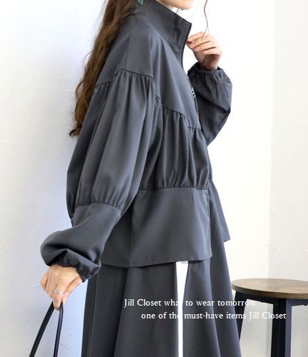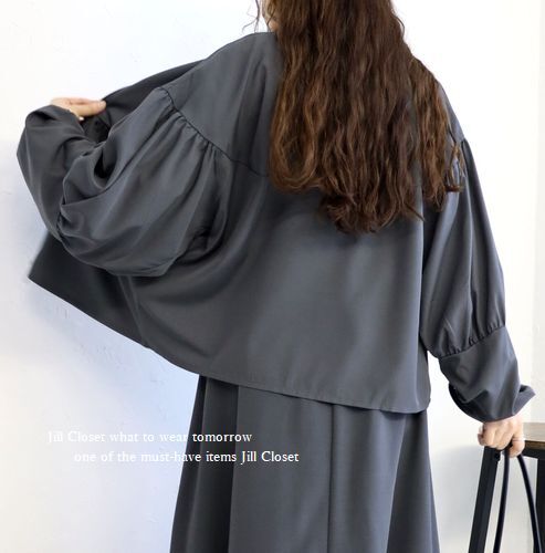 新品【送料185円】CHARCOAL**スタンド襟&バルーンスリーブ*ギャザーデザイン*羽織り ジャケット7706