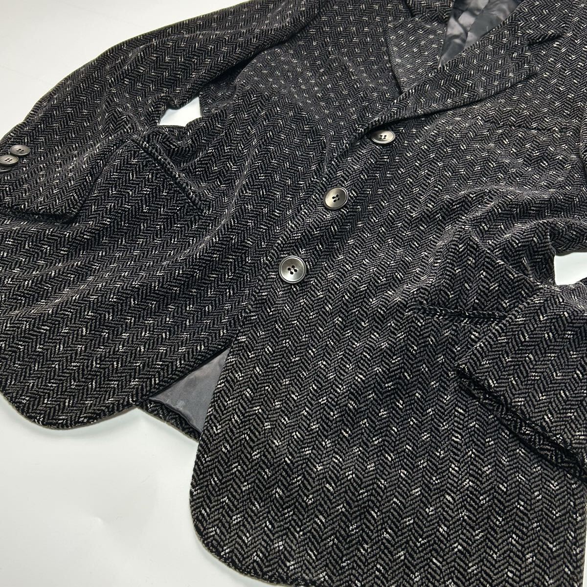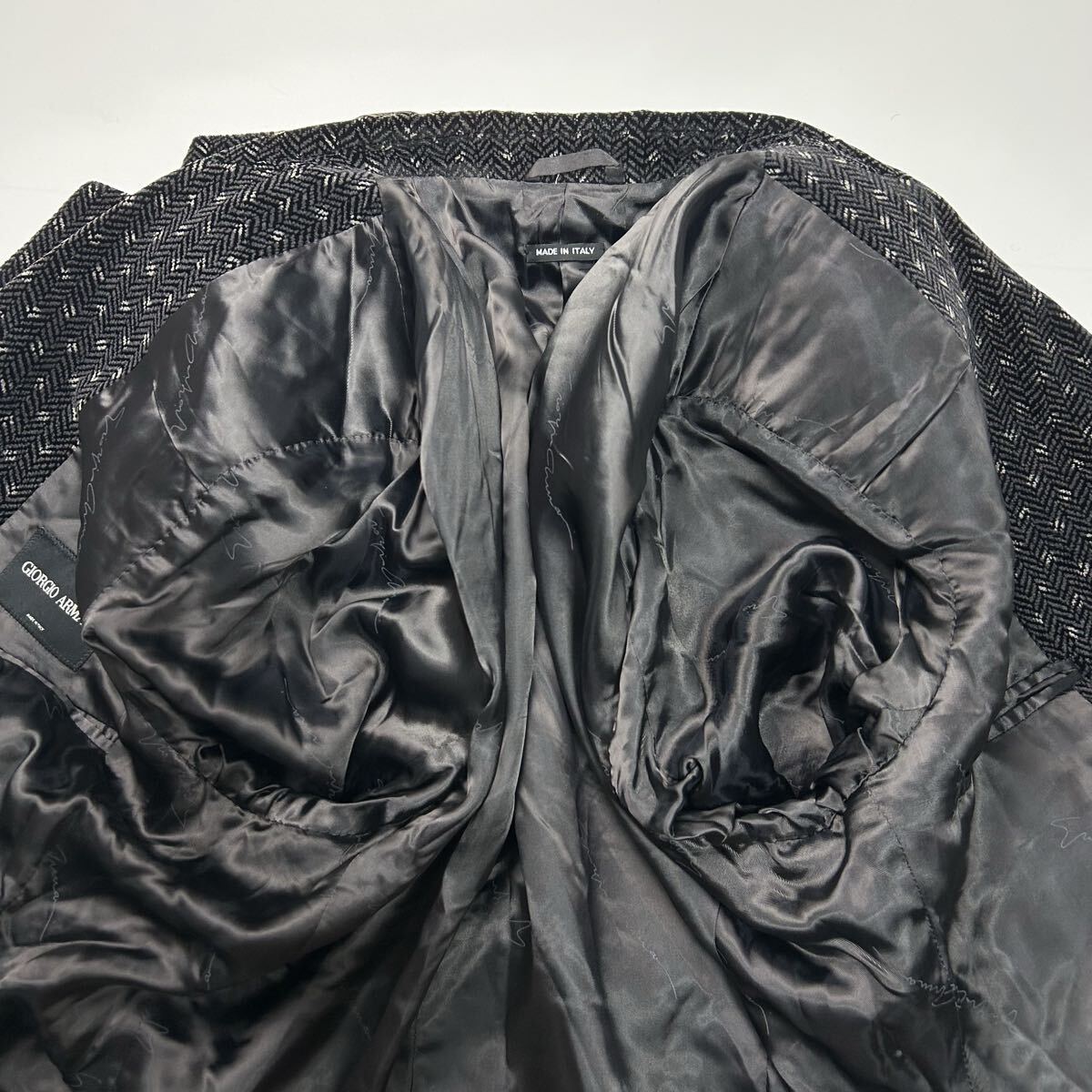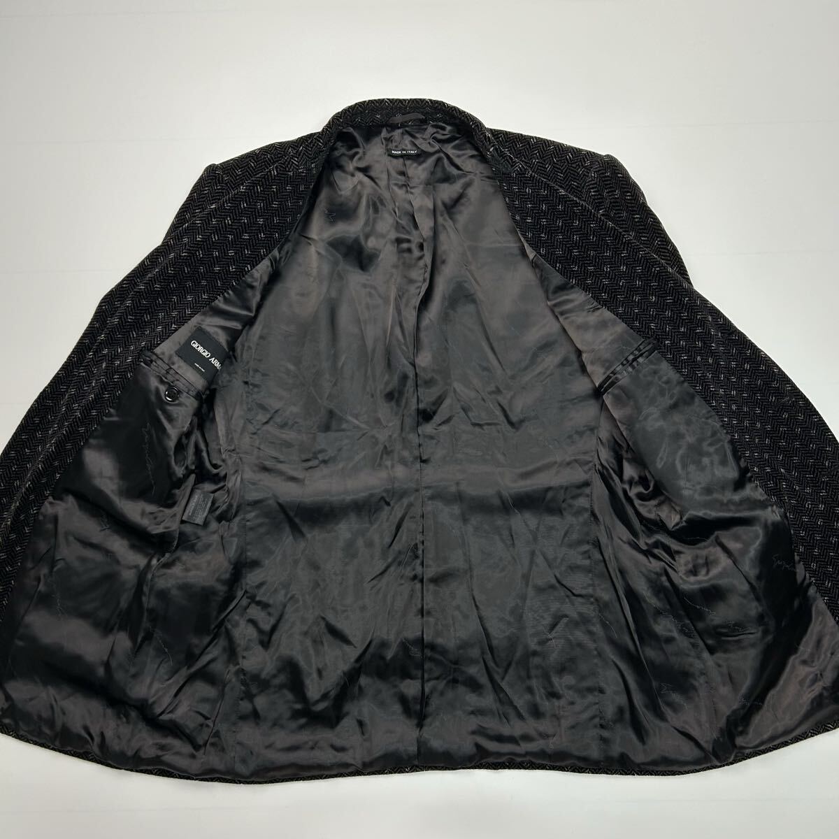 美品★ 特大サイズ XXXLサイズ GIORGIO ARMANI ジョルジオアルマーニ テーラードジャケット シルク イタリア製 ヘリンボーン ブラック 総柄
