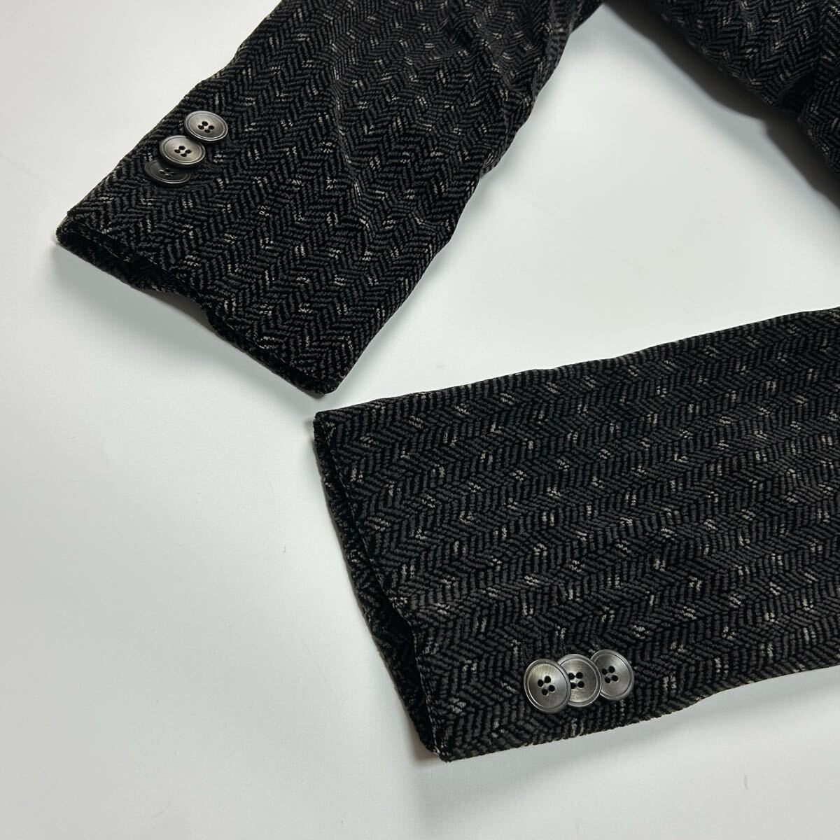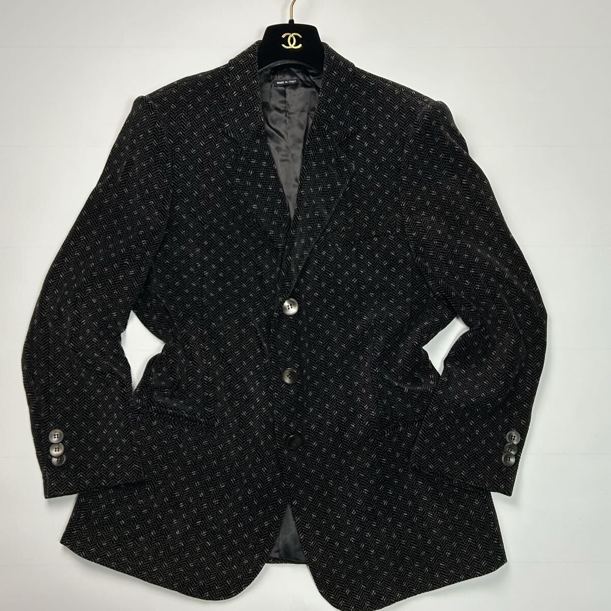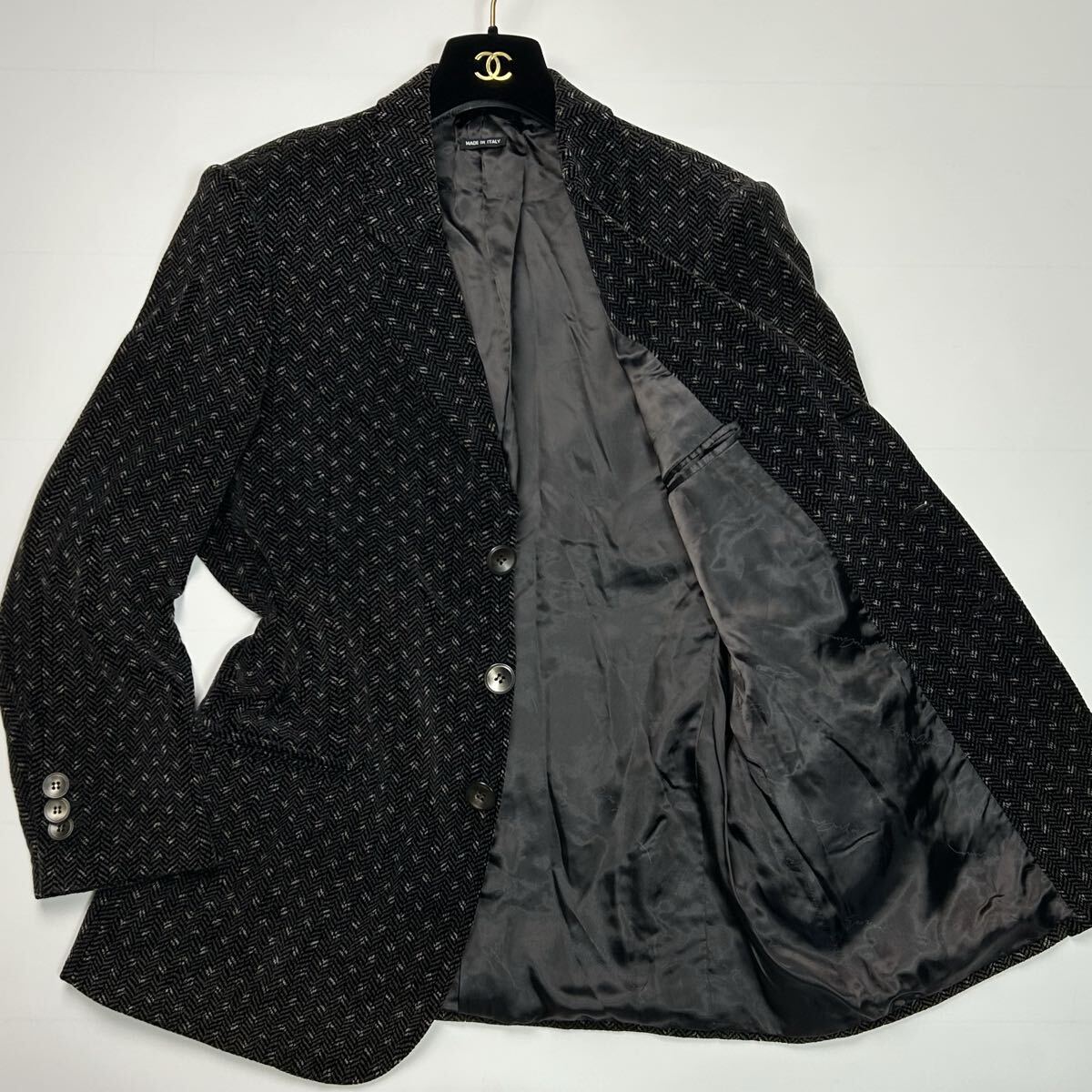 美品★ 特大サイズ XXXLサイズ GIORGIO ARMANI ジョルジオアルマーニ テーラードジャケット シルク イタリア製 ヘリンボーン ブラック 総柄