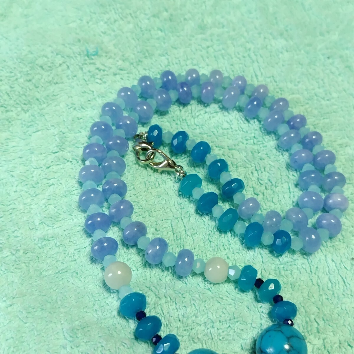 アクアブルー半丸形、44石(縦4mmx横7mm)ソロバン形。アパタイト(濃い目ブルー7.5mmクリスタルカット)オニキス(クリスタルカット2石7mm)オニキスクリスタルカット、6石1mm。翡翠(白系2石7.5mm)ターコイズ14mm丸玉2石。ターコイズ、マガタマ縦39mmx横18.5mm、綺麗なターコイズです。金具シルバーメッキになります。3石ジルコン付。全体的にブルー系の色彩が美しいです。長さ63cm。重さ60.5g。ブルー系の綺麗な一品になります。ロングになりますが男性的ですが、女性にも相性が合います。他にない一品を是非選んでください。ノークレームノーリターン細かい事にこだわる方は入札を控え下さい。新品未使用になりますが.あくまでも中古品になります。少しでも不安な方は入札を控えて下さい。手続きは24時間以内.決済は3日以内にお願いします。付属品社外品ケース、システム変更の旨受け取り確認を必ずボタンを押していただきます様にお願いします。記載事項に多小の誤差はお許し下さい。どうぞよろしくお願いします。写真は拡大でご覧下さい。
