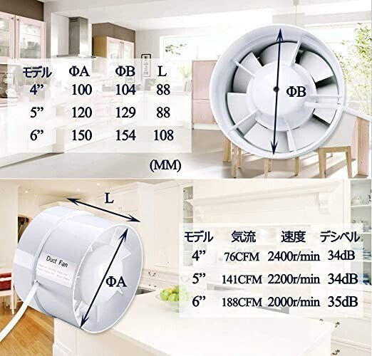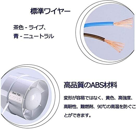 ★「過熱保護・安全安心」この換気扇の適用環境温度は0-40度です。最適クーリングを実現する軸流パイプファン、密封された純銅の軸受けモーターは、発熱が少なく、普通のモーターよりも自由運行時間が長く、寿命が長いです。過熱保護装置が内蔵されています。モーターが過熱すると接点が切れ、停電保護と二重保護の役割を果たします。安全性の利点を有します。