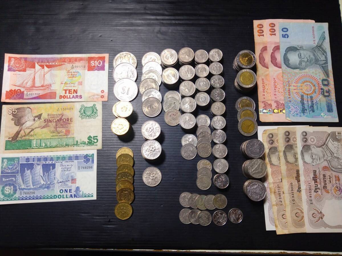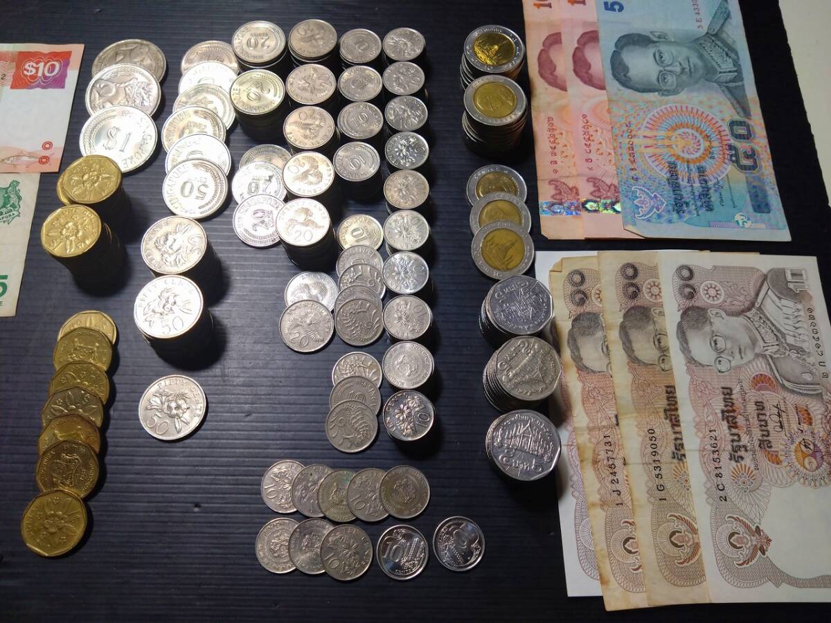 シンガポール、タイ 札 コインまとめです。
