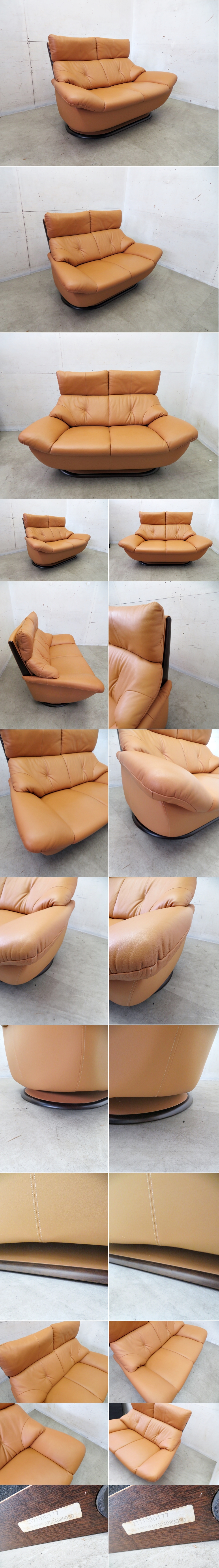 ■P054■美品■カリモク/karimoku■牛本革■オーク材■2人掛けソファ/2Psofa■ZT71■モダン■