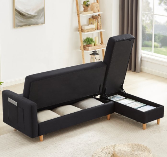 ソファ ソファーベッド カウチソファ 3人掛け オットマン付き 多機能ソファ 左右側とも取り付けるアームレスト たくさん収納