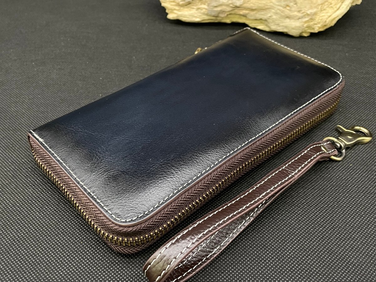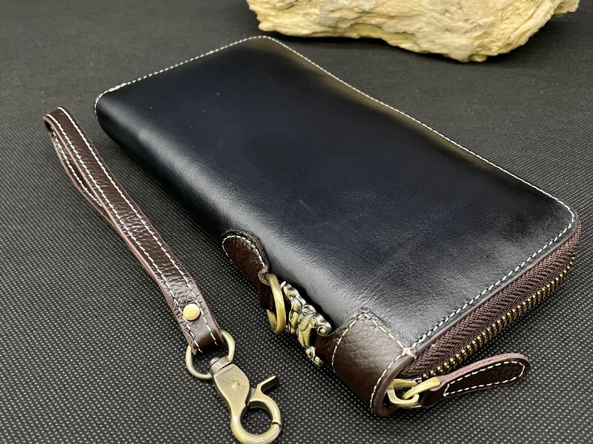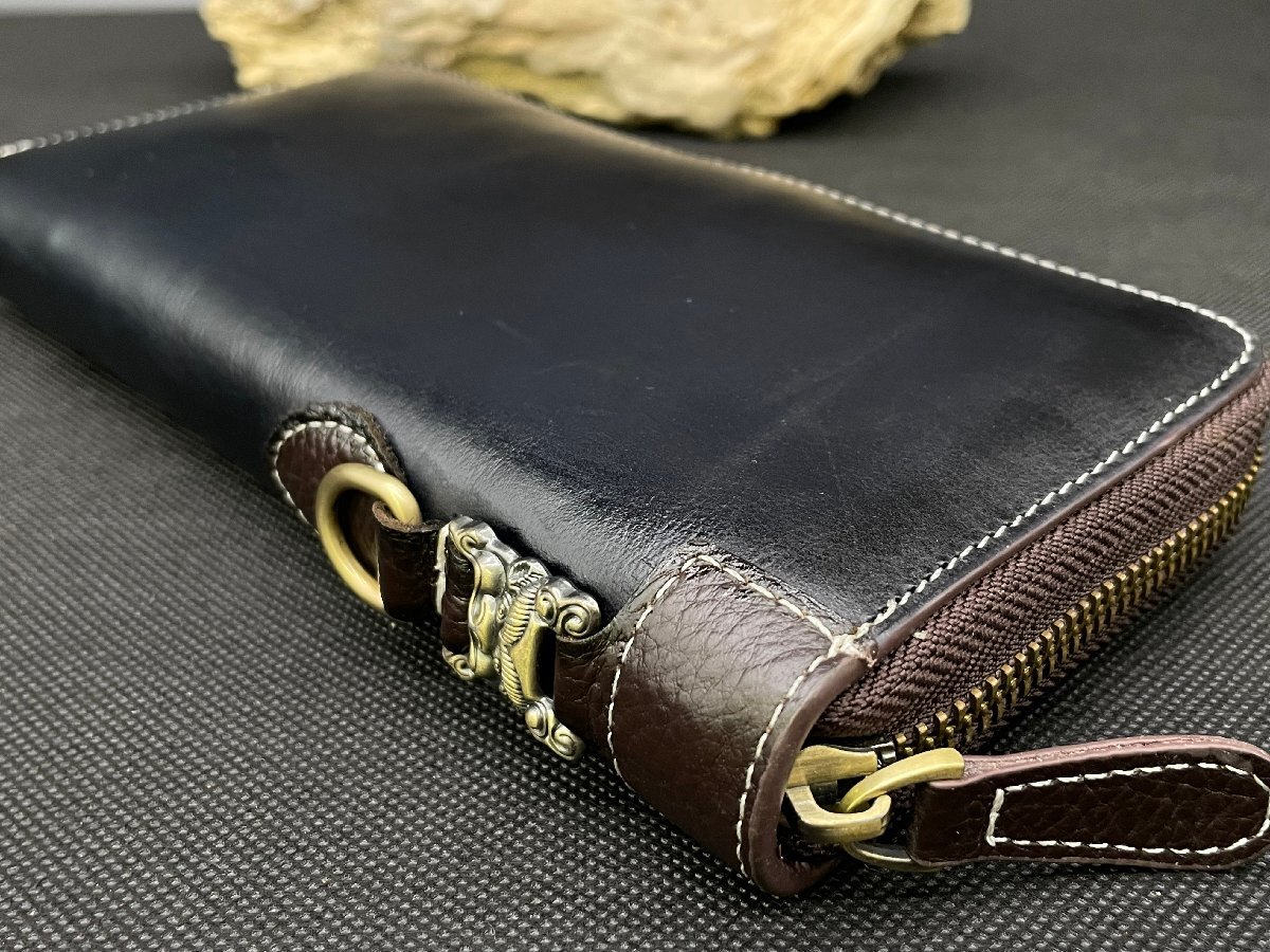 1円 本革 ハンドメイド 長財布 牛革レザー ウォレット 牛ヌメ革 ラウンドファスナー 男性用財布 ブラック 未使用