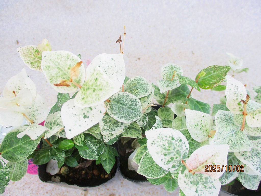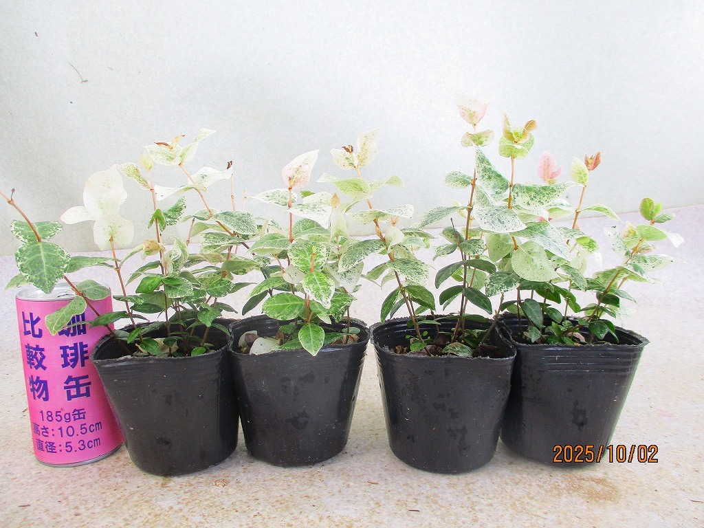 [緑の市場]初雪葛 4点組(10135黒ポット)全高:20㎝*同梱包対応「まとめて取引」厳守*80サイズ送料明記 同梱包ご希望は「まとめて取引」でお手続きして下さい。 *同梱包は[緑の市場]のタイトルでの出品商品に限ります。類似画像で他IDの出品にご注意下さい。* 単品(セット品は1組)発送ご希望の際は「まとめて取引」の手続きをしないでください。入札前に必ず下記の「発送方法」に記載の送料を確認してください。 ヤフオクの取引においてメッセージは特に必要ありません。挨拶などを省略できる取引システムですし取引ナビの通知で進行状況が判るので都度の連絡(送金や受け取りのメッセージ)は不要です。配送日時指定や連絡事項のみお知らせください。双方合理的に進めましょう。また、お急ぎの方は入札をご遠慮ください。業務時間内での対応になります(土日祝休業)。 寸法は鉢を含む全高です。(樹高ではありません。) 一緒に撮影しているスケールまたは比較物をご参照ください。 飲料缶は高さ約10㎝、直径約5㎝です。 500mlペットボトルは高さ約21㎝です。 ■画像の様子から経時変化しますので撮影日(画像記載)からの変化はご了承下さい。 *花物・実物は特にご注意下さい。 画像(撮影時)では開花品でも、お届け時は花終わりを想定して下さい。 ◎落札が無い場合は、自動再出品が継続されます。 撮影から2か月経過した場合、どんどん開始価格が下がりますが、商品の劣化も進みますので、 撮影日からの期間経過品はある程度の劣化を想定で入札にご参加下さい。 商品により90日間程度(物によりそれ以上)同じ画像を使用しますので、必ず撮影日をご確認下さい。 |