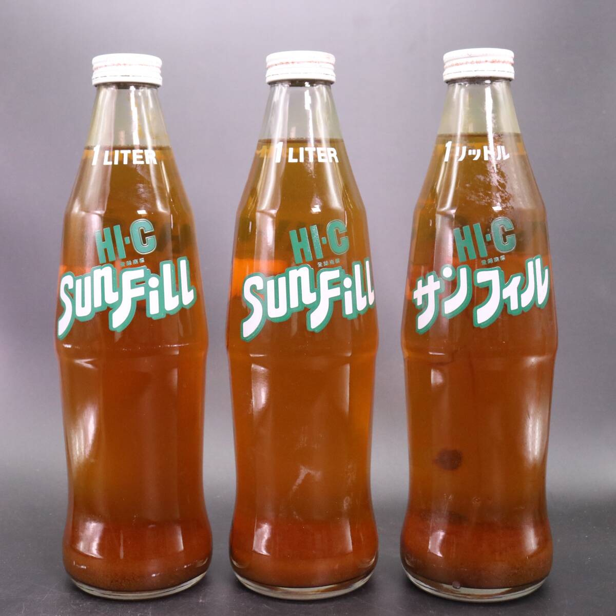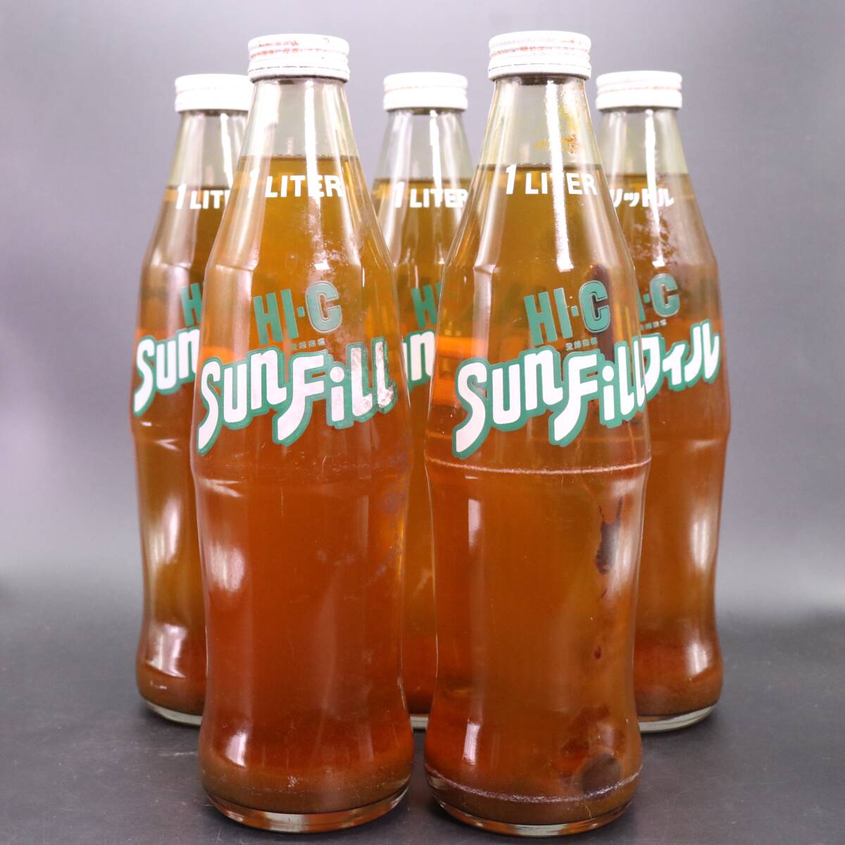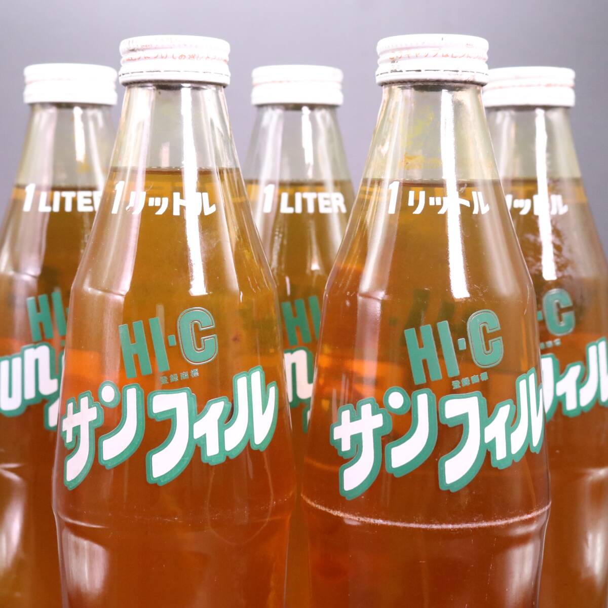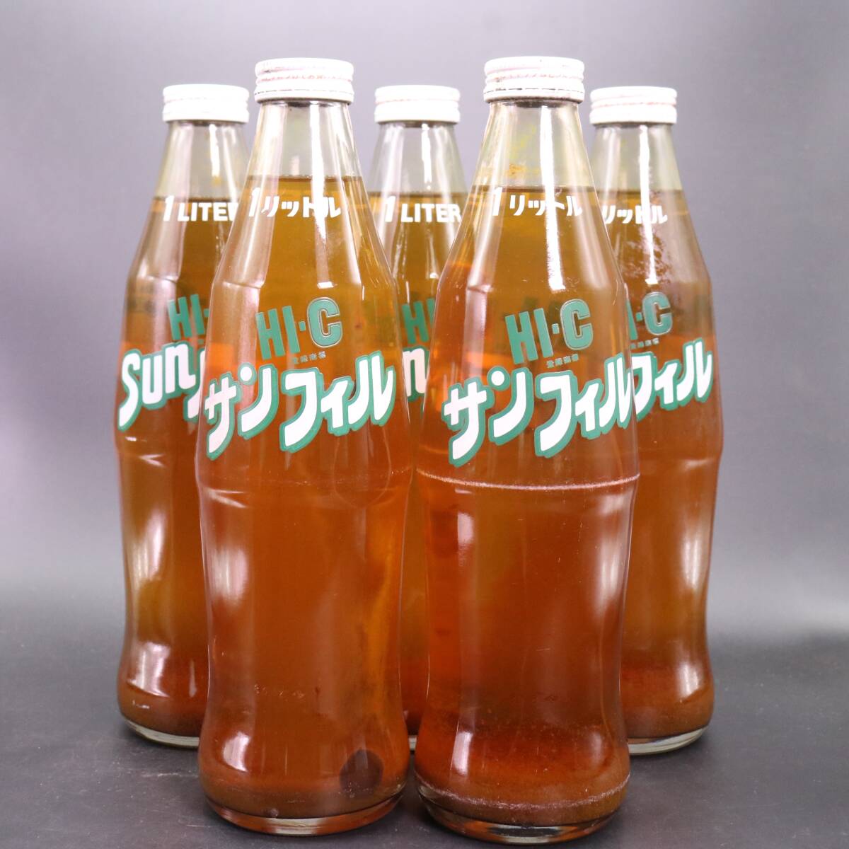 未開栓 昭和レトロ HI-C サンフィル 1L 中身入り レトロ瓶 5本セット です。