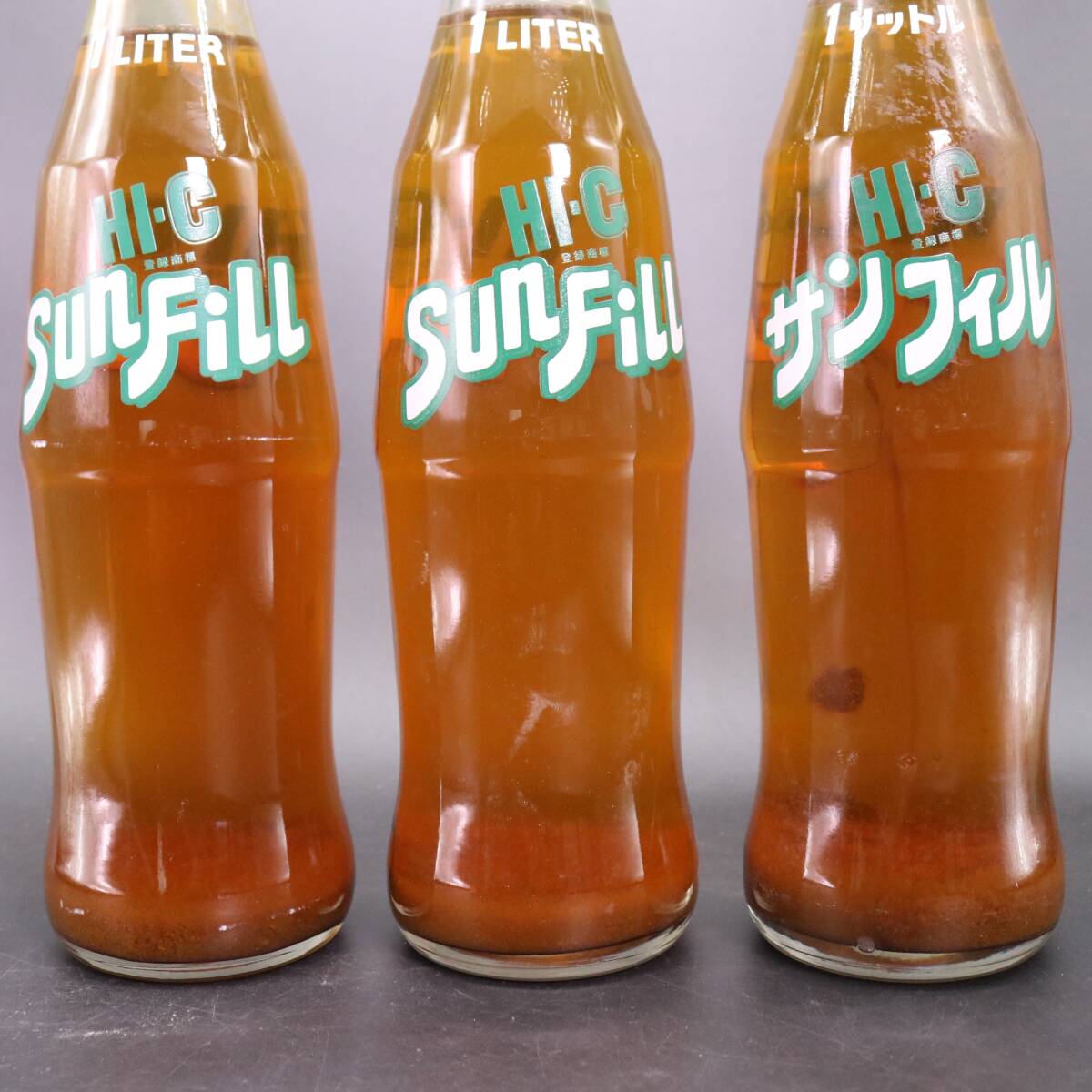B1193 未開栓 昭和レトロ HI-C サンフィル 1L 中身入り レトロ瓶 5本セット 当時物 アンティーク ガラス瓶 ビンテージ コレクション