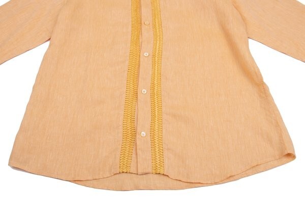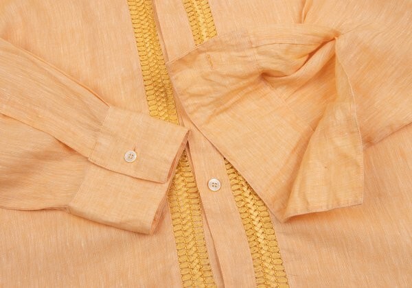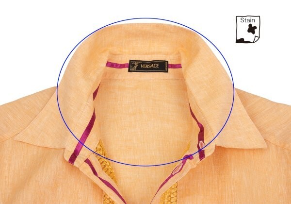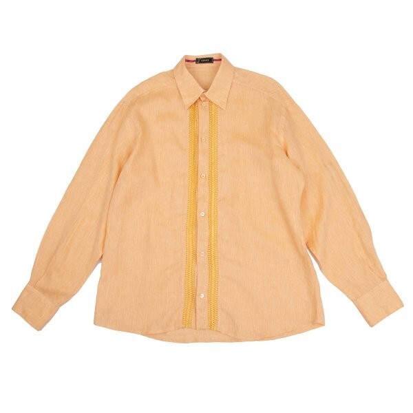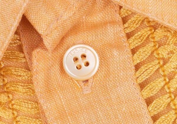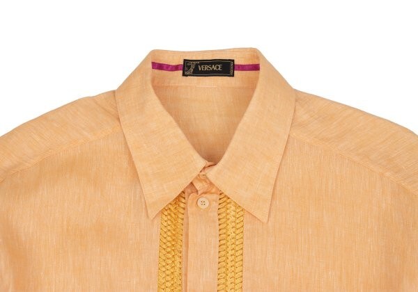 | ヴェルサーチVERSACE フロント透かしライン切替シャツ オレンジ56 |