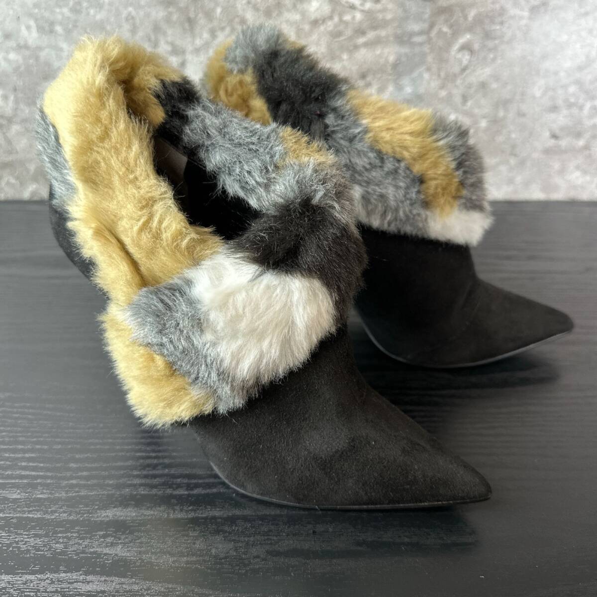 上質な本革スエードとふわふわのミックスファーが目を惹く、
