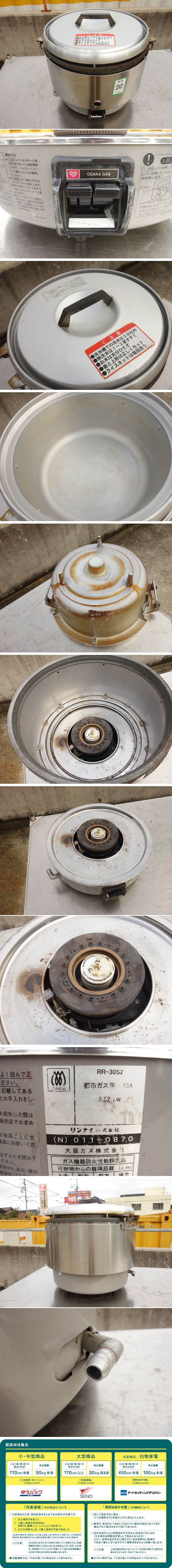 【中古】M▽リンナイ 業務用 ガス 炊飯器 3.3升 6.0L 都市ガス 天然ガス 13A 卓上 RR-30S2 (31653)