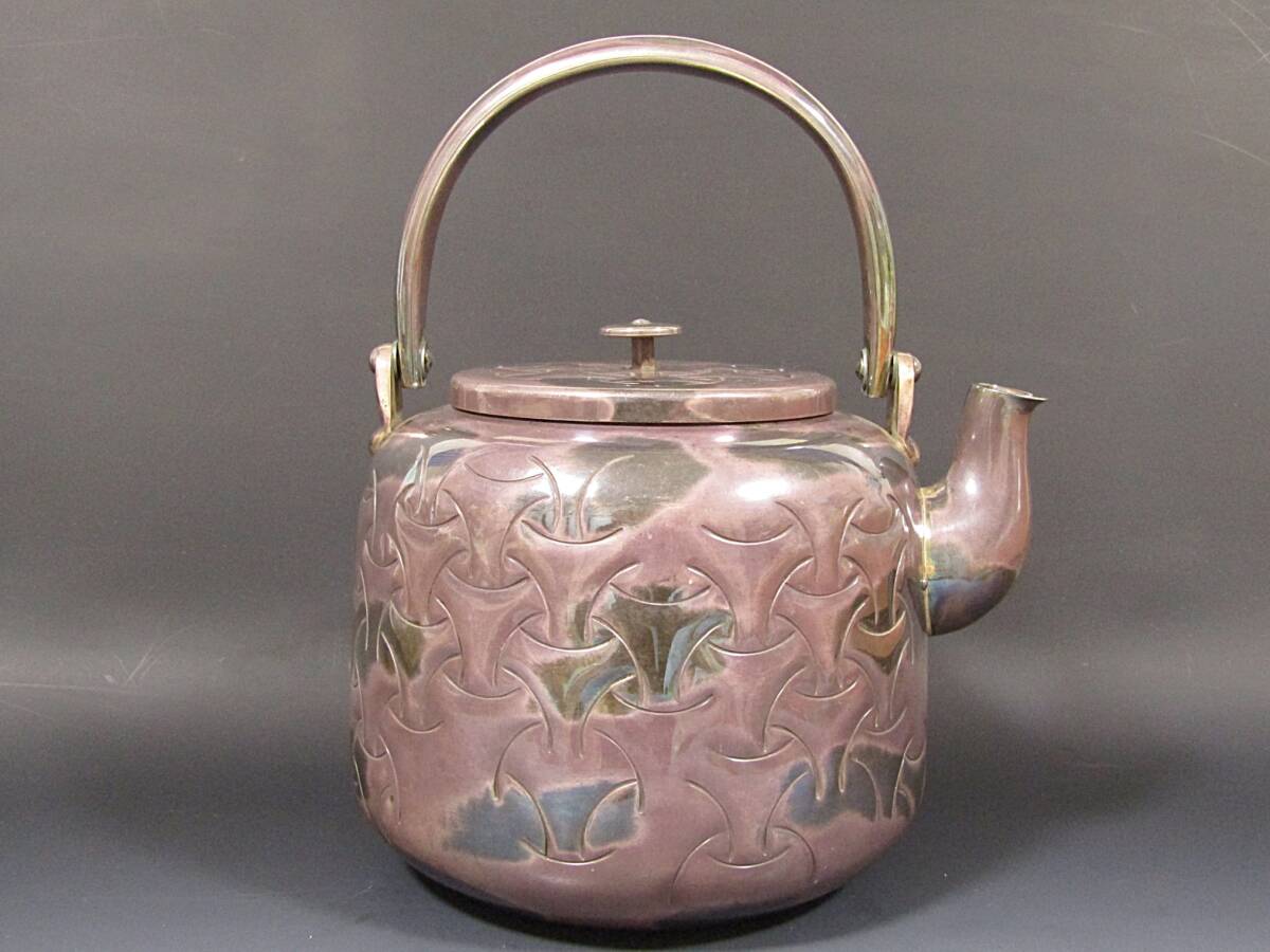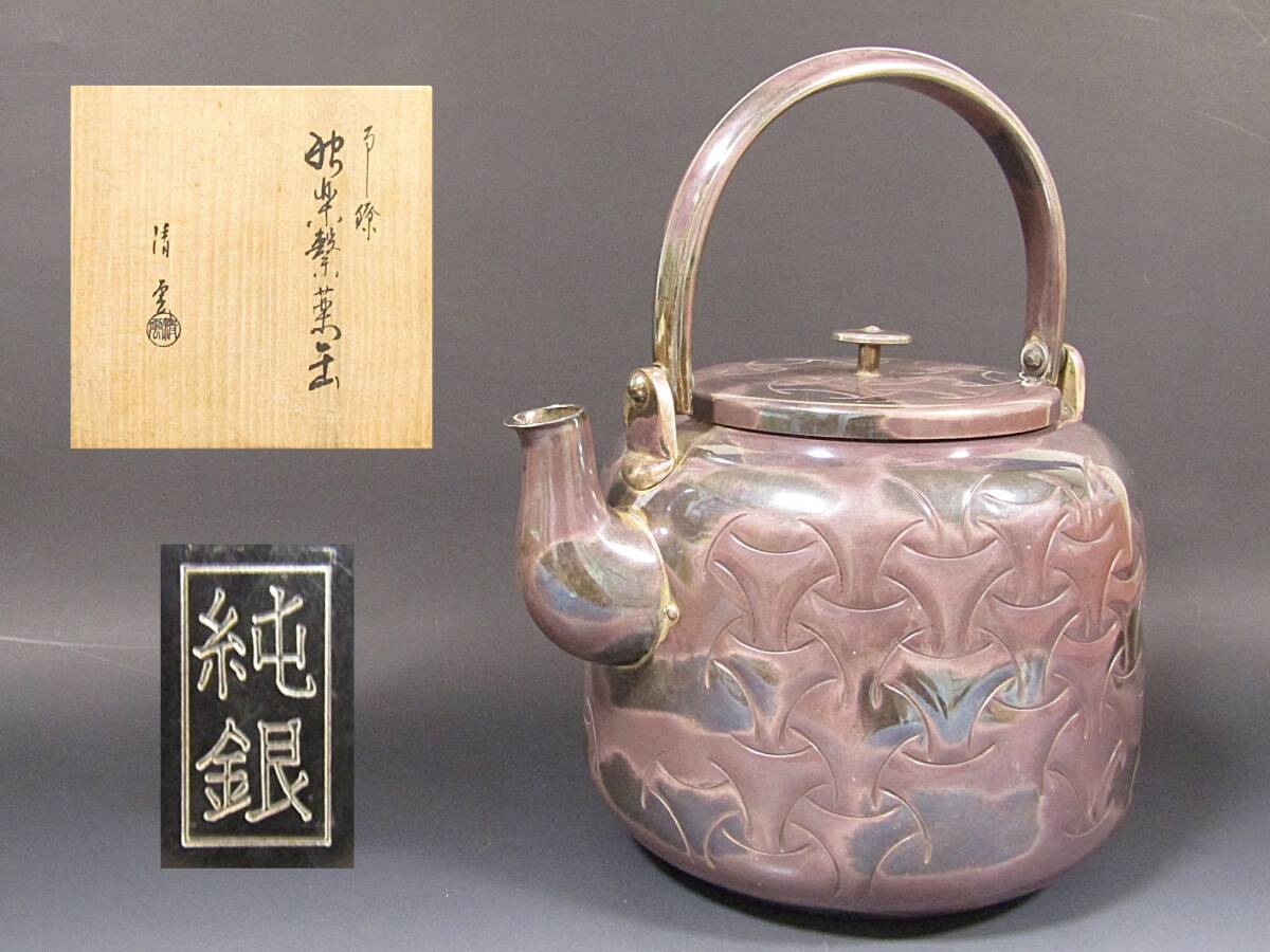 | 《遊》 木村清雲 南鐐独楽繋薬缶(純銀 972g)共箱 ◆ 真贋保証 茶道具 保管品 |