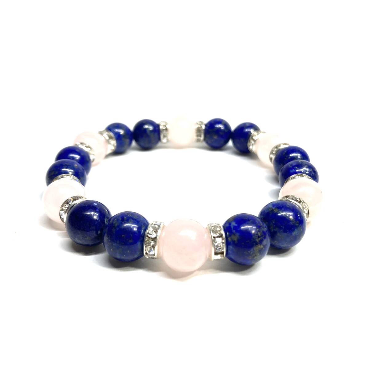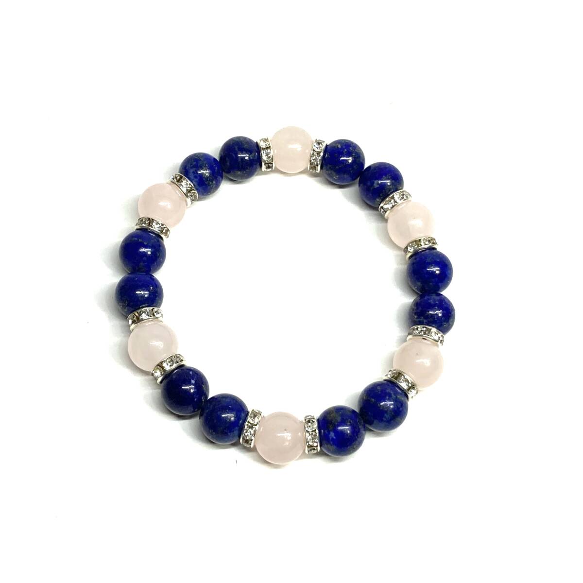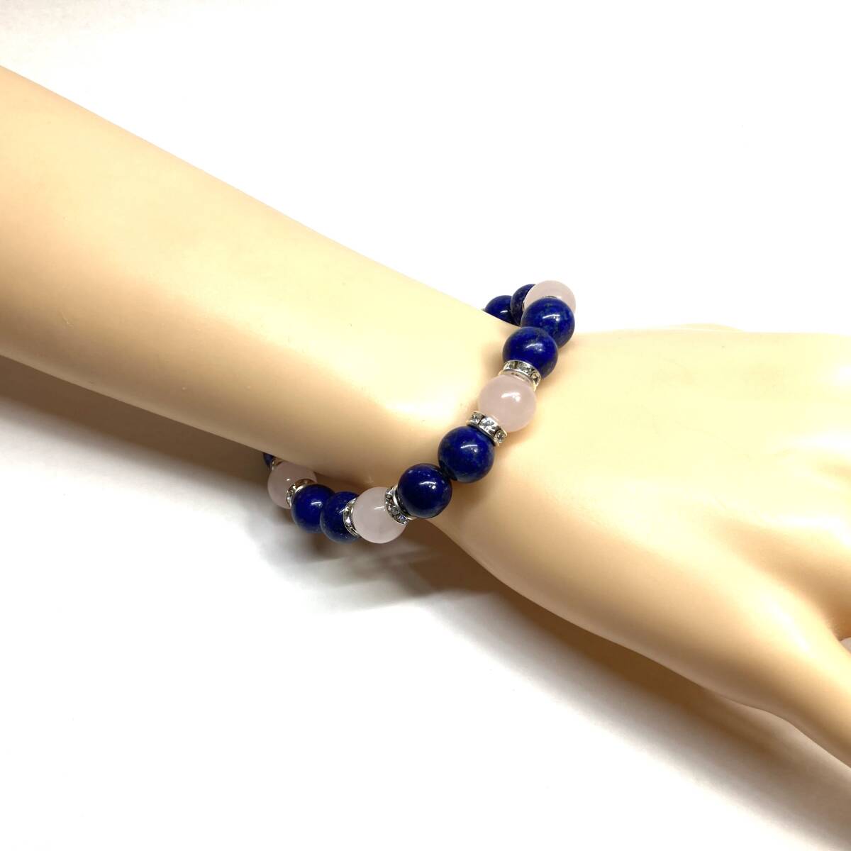 ラピスラズリ&ローズクォーツ パワーストーン ブレスレット 天然石ブレス (シルバー) 10mm メンズ・レディース 恋愛運 ☆