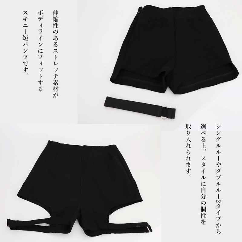 [L]着丈:約33cm 股下:約5cm ウエスト:約57-80cm ヒップ:約72cm もも周り:約42cm