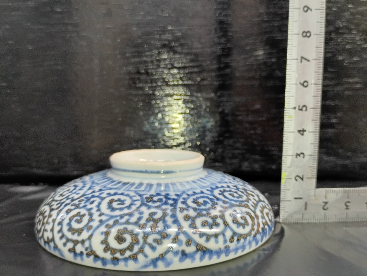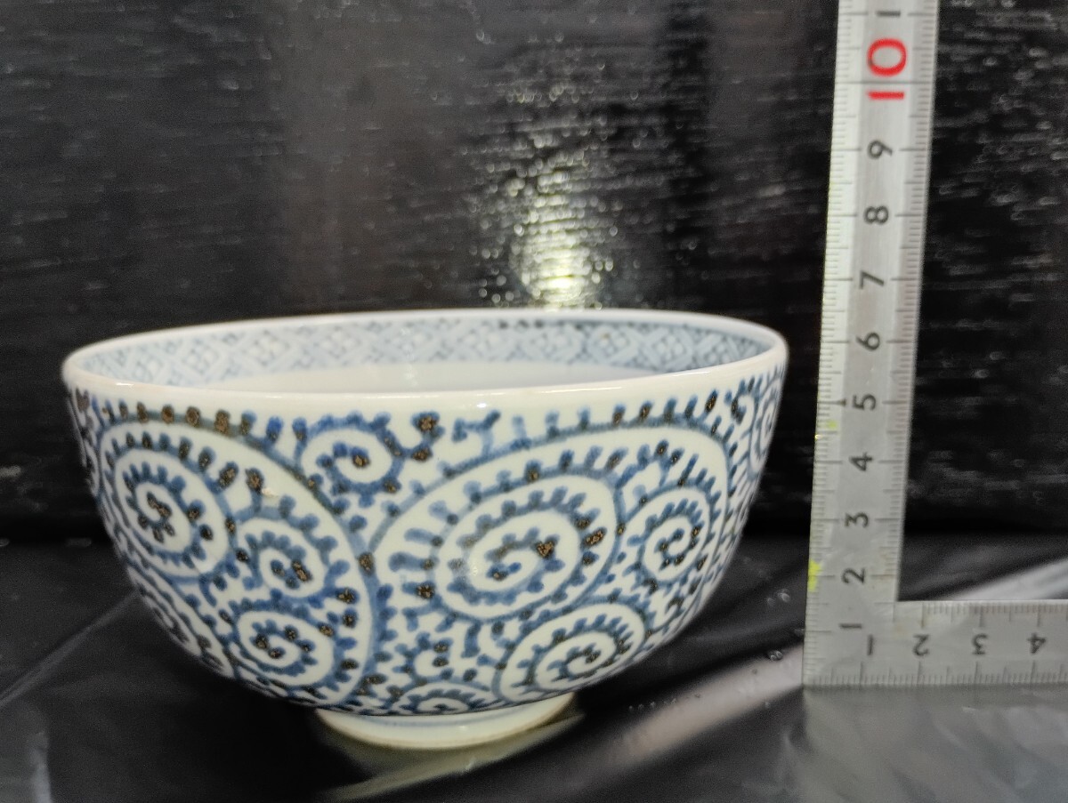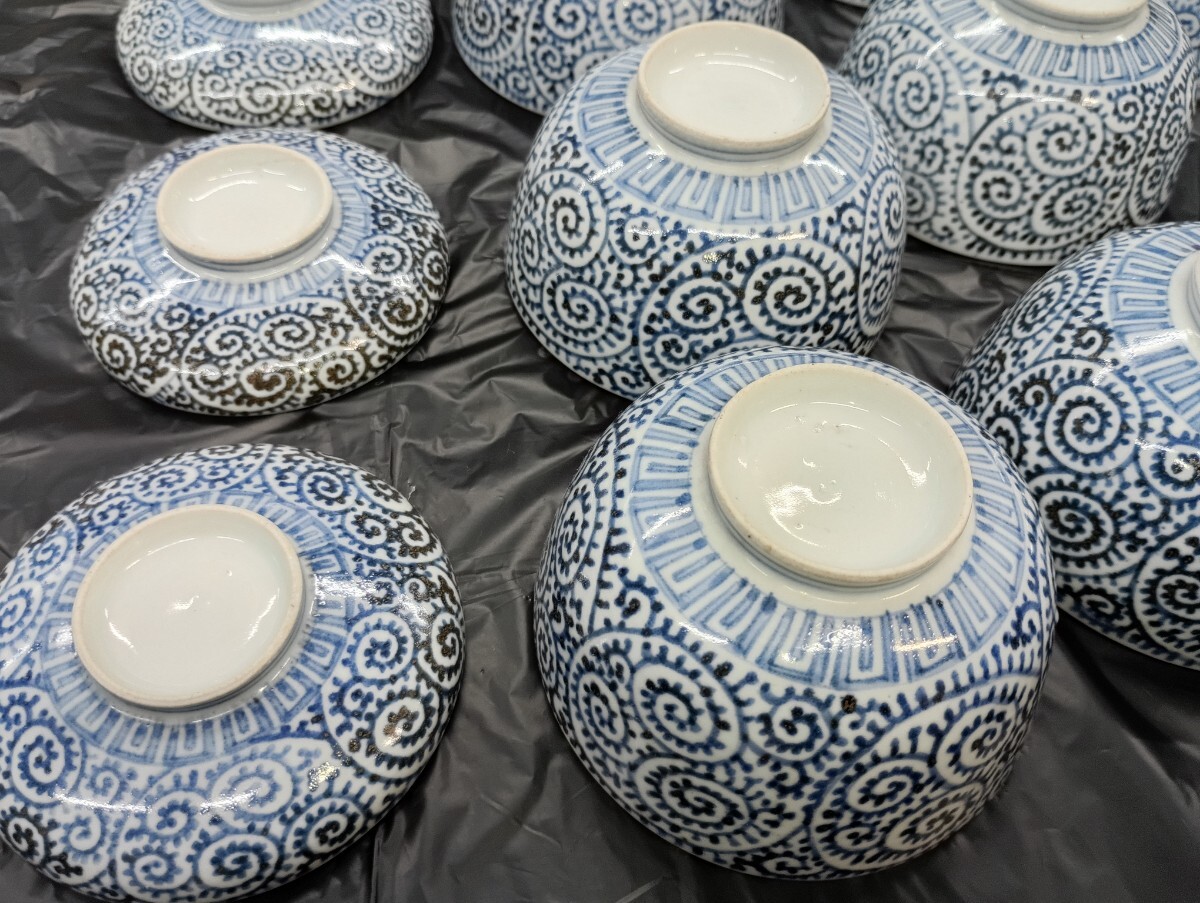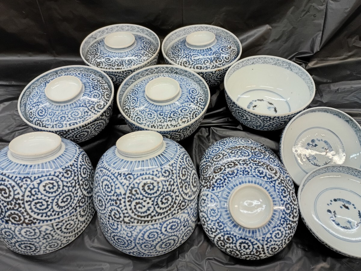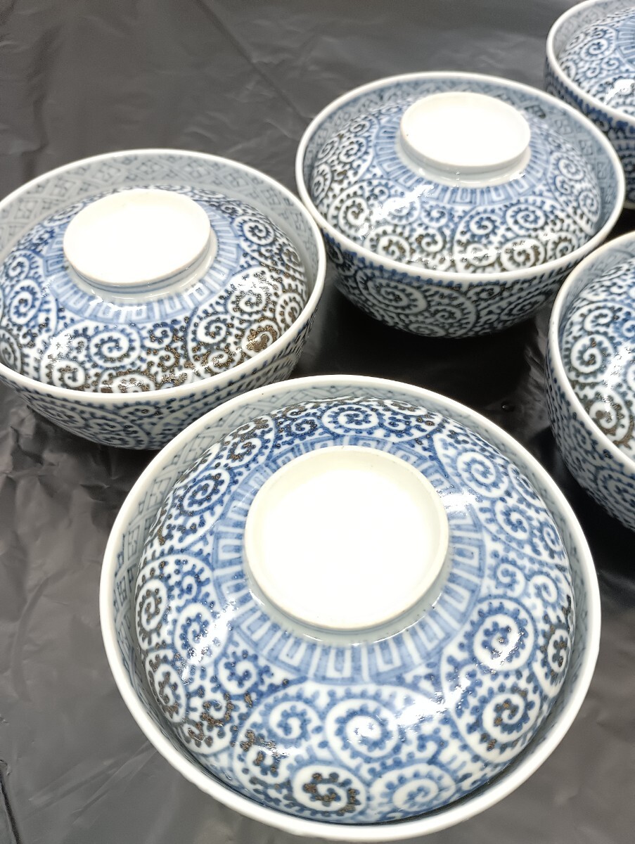 30年程前に古民家の蔵を解体するときに出てきた蛸唐草の蓋付き茶碗です。当時は10客揃っていましたが30年の間に1客は割れてしまい現在9客残っています。