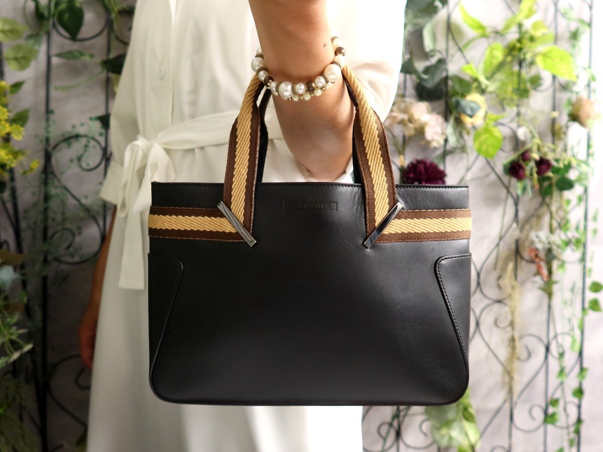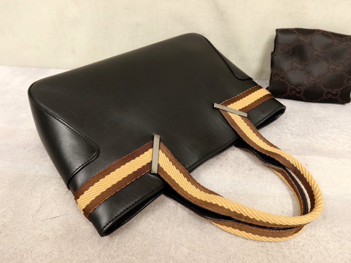 ●超美品●GUCCI グッチ●シェリー●ロゴ型押し●カーフ レザー 本革●ハンド バッグ●黒●シルバー金具●イタリア製●腕掛け●Js60844
