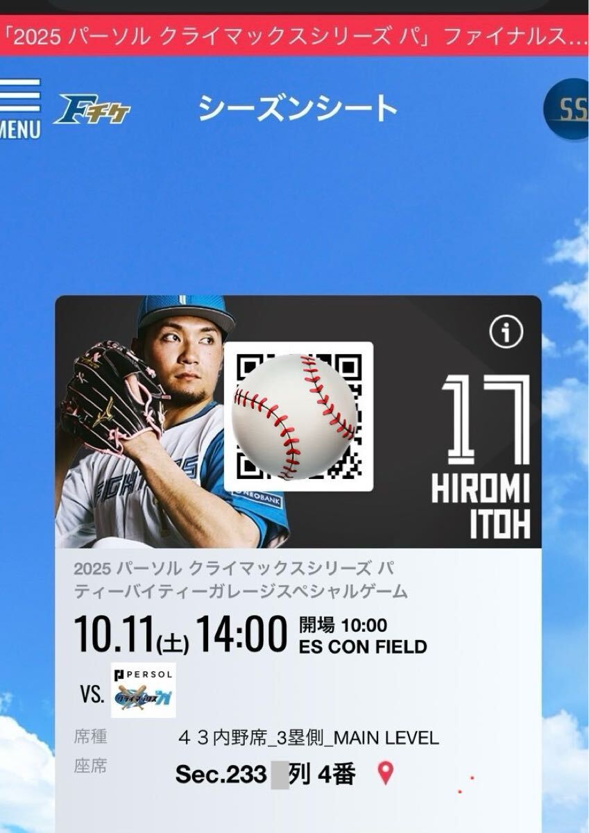 座席は前から5番以内の見やすい席です