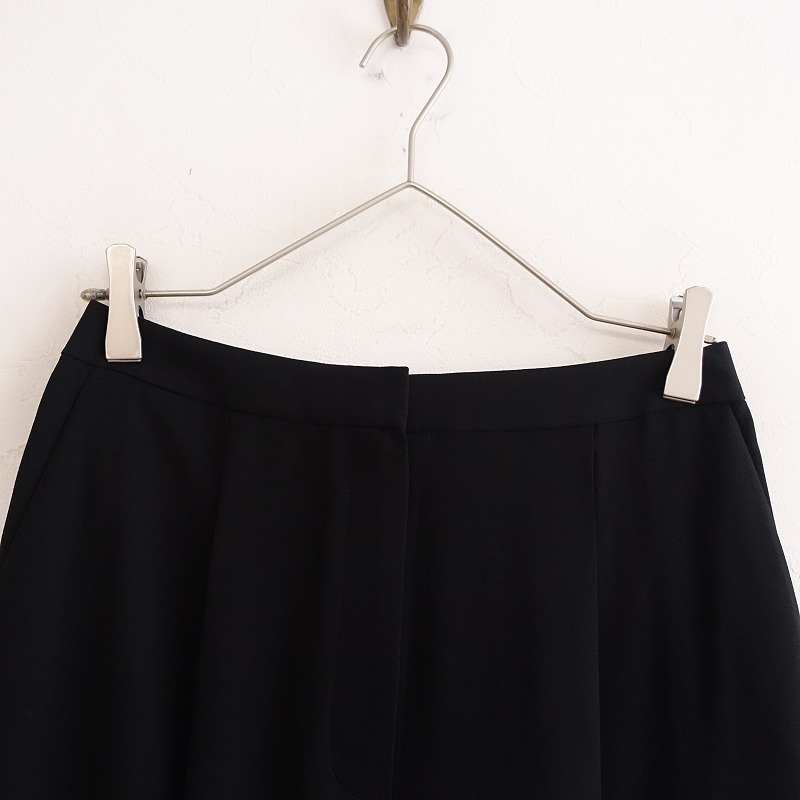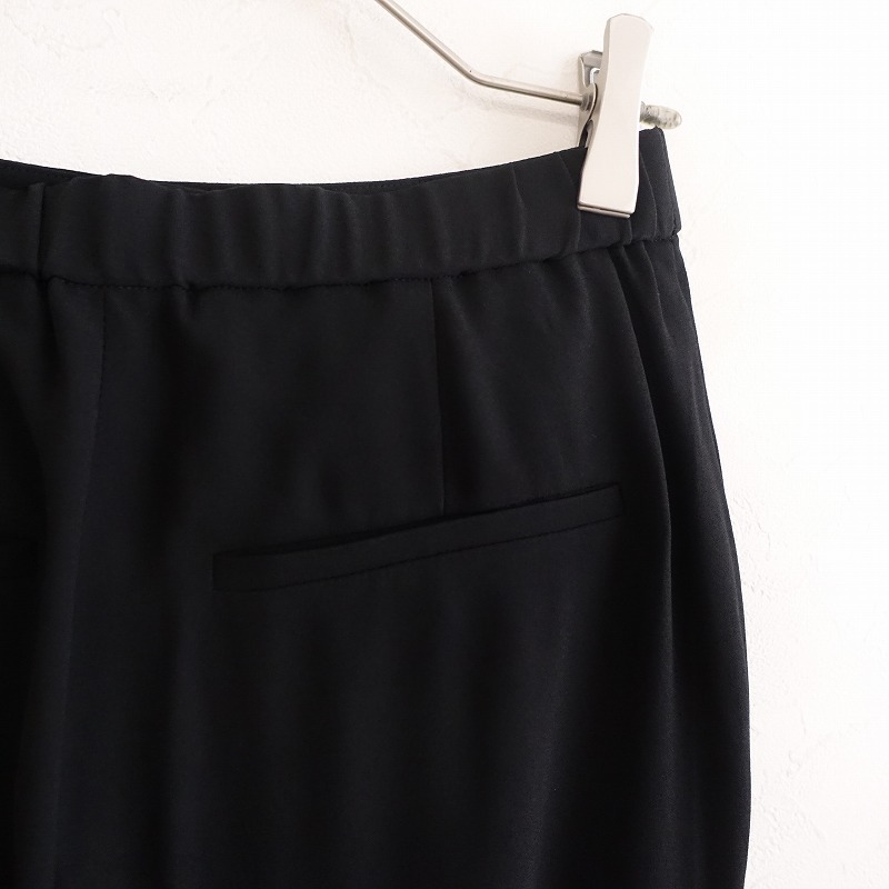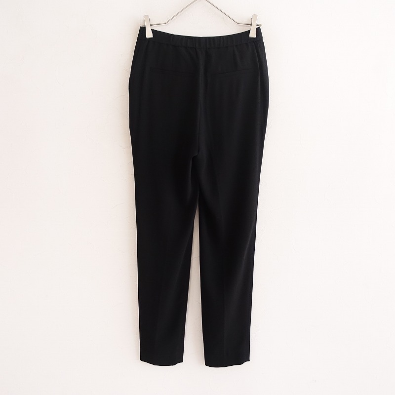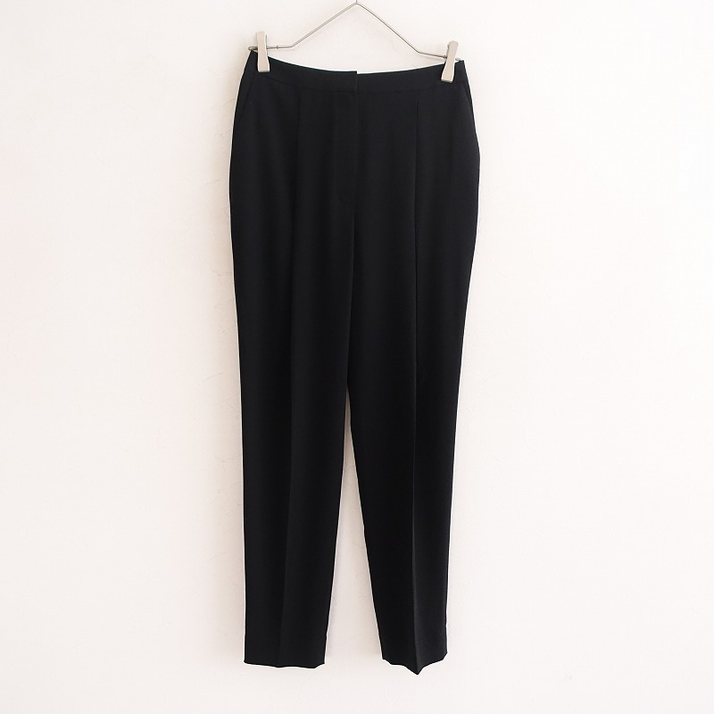 theory luxeのタックテーパードパンツです。カラーはブラックで、さらりとした薄手の素材です。フロントにタック入りのテーパードデザインで、フロントのホック・内ボタン&ジッパーで着脱できます。バックウエストにゴム入りで、前腰左右&ヒップ左右にポケットがございます。定価(メーカー希望小売価格)28,600円の商品です。 |