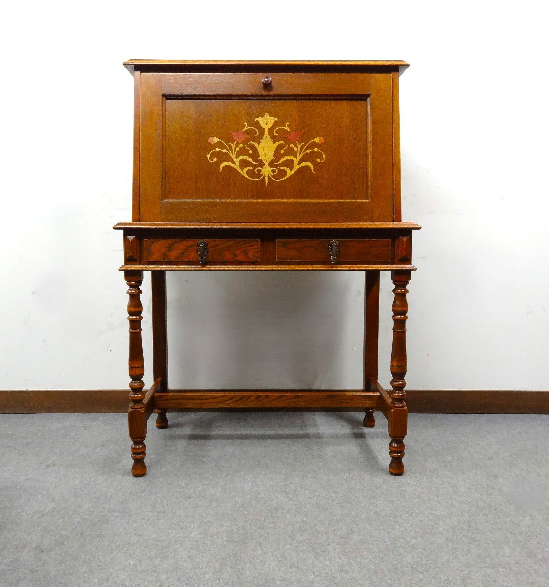 | 三越家具 COUNTRY HOUSE ライティングデスク オーク材 象嵌 ビューロー 英国家具風 カントリーハウス 花柄 | |