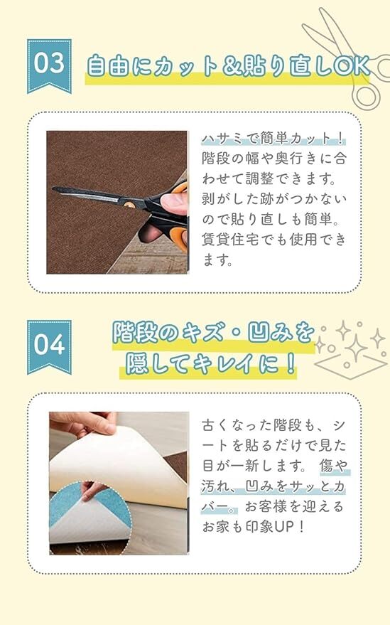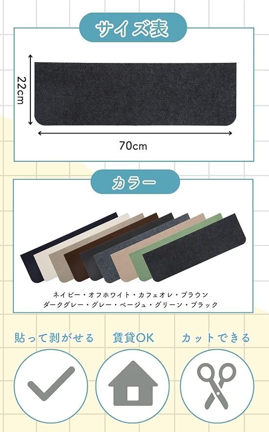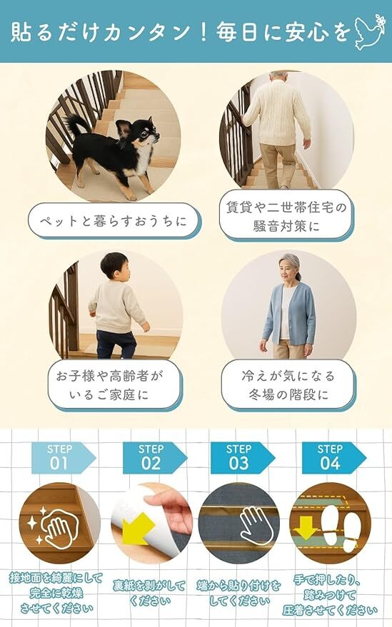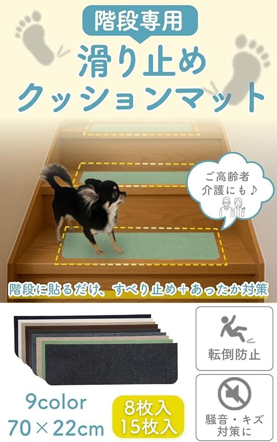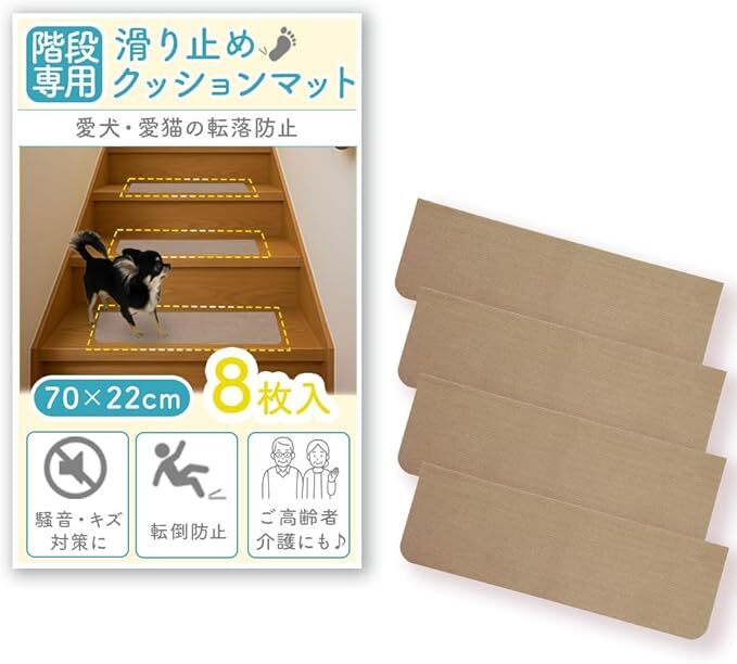 Amazon | 【階段の安全対策】 階段マット 滑り止め 床保護 ペット 高齢者 子供 吸着クッション 静音 カット可能 ズレない (ベージュ, 70X22cm 8枚入)