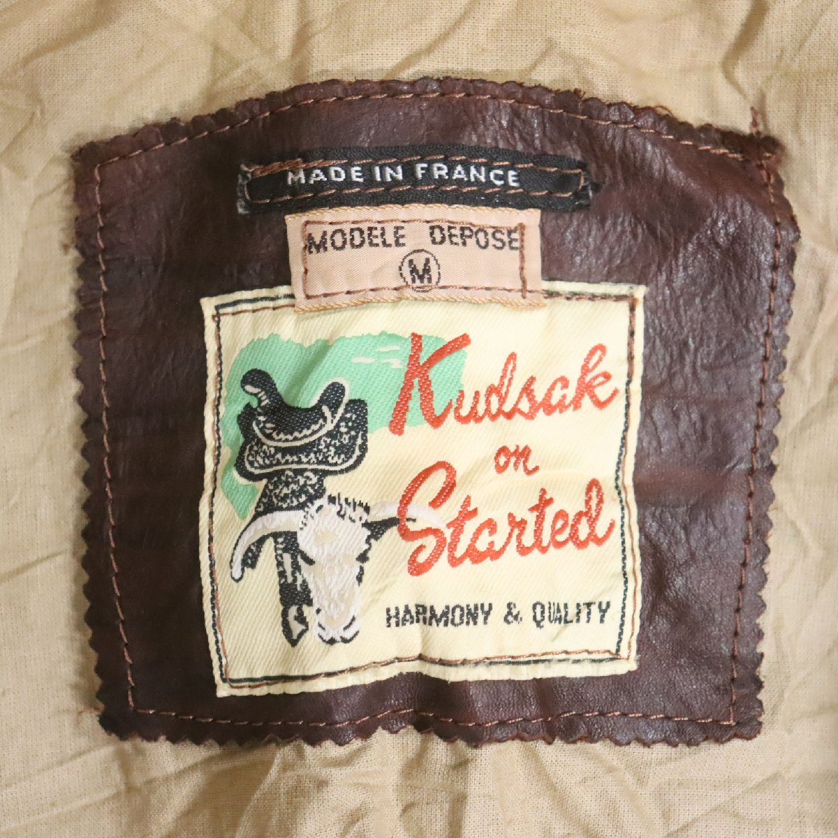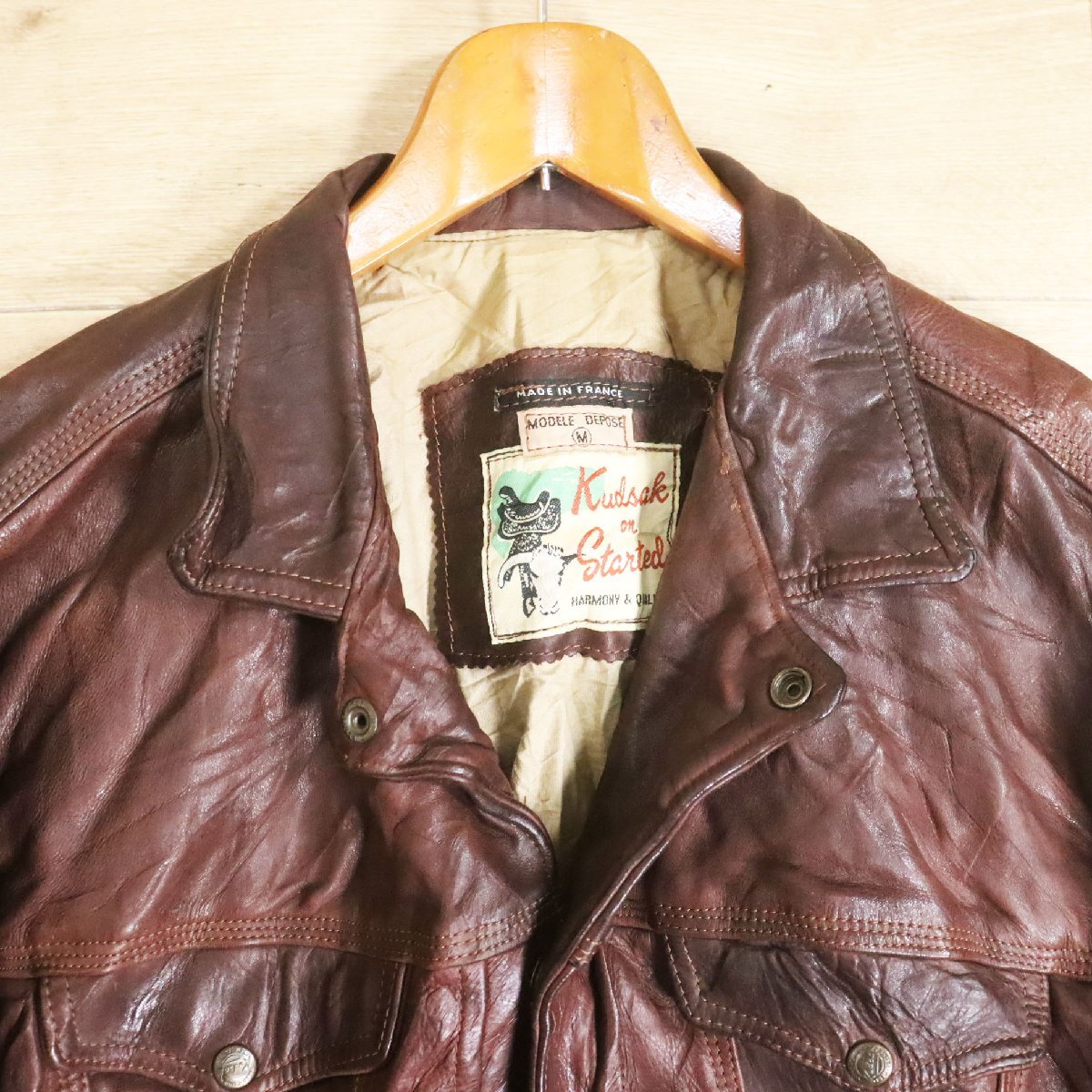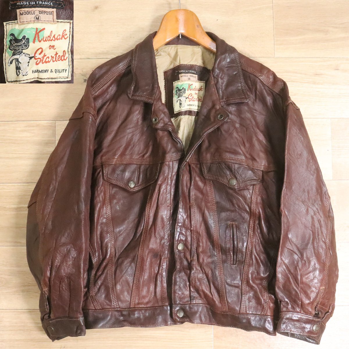 F7S/Y6.17-3 フランス製 Kudsak on Started レザージャケット 本革 トラッカージャケット ジージャンタイプ ブルゾン M ブラウン