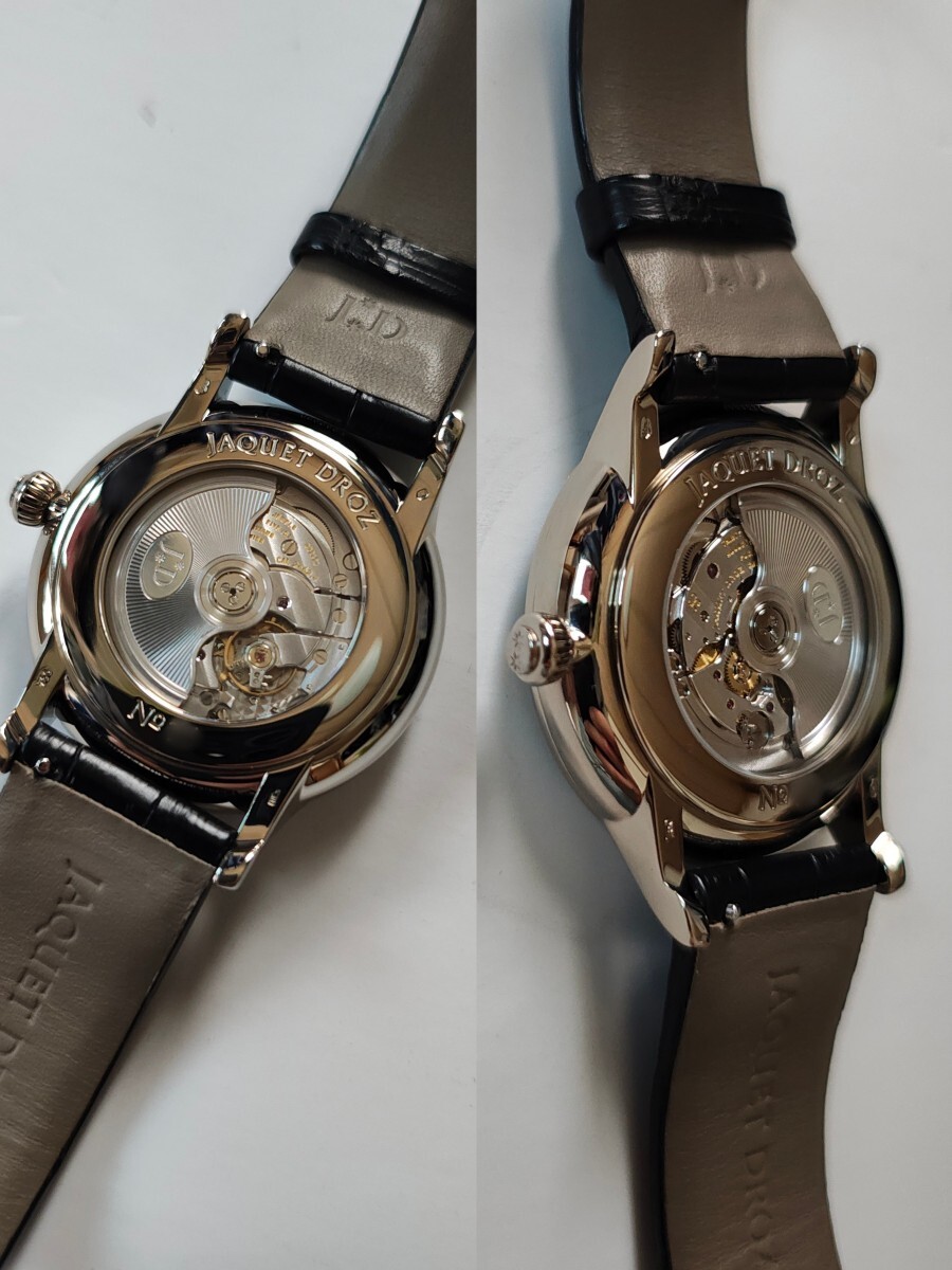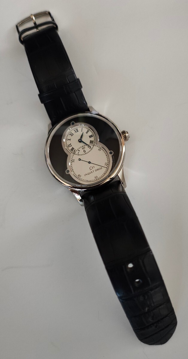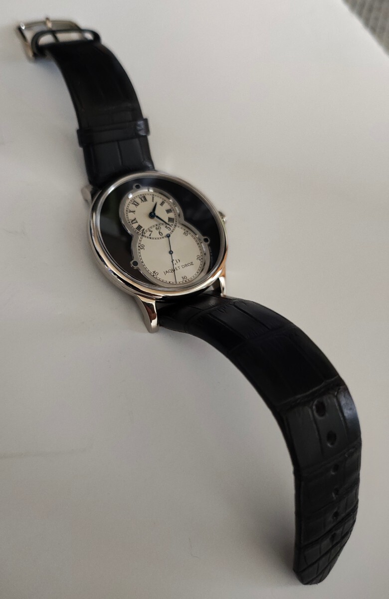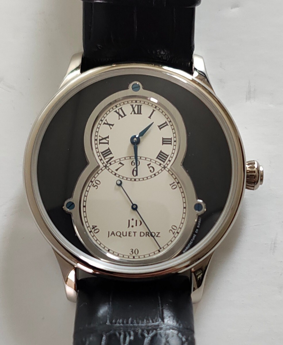 ジャケドロー グランセコンド メタルリングJaquet-Droz Grande Seconde J003034203 になります。ケース径43mm、ケース、尾錠材質k18ホワイトゴールド、ワニ皮ストラップ、自動巻。使用感無くキレイな状態だと思います。 発送はヤマト60サイズ予定になります。よろしくお願い致します。