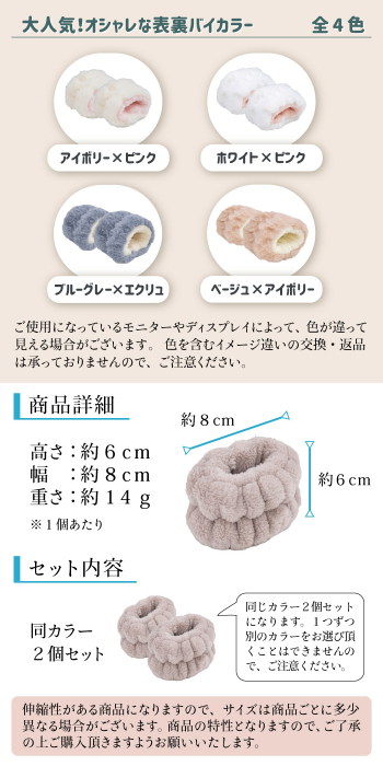 | ■素材:吸水性の高いマイクロファイバー ■カラー:モカ 【おすすめポイント】 吸水性の高いマイクロダイバーを使用しているので水を素早く吸収します! 洗顔時の腕に水が垂れてきて袖や床が濡れてしまうストレスが軽減されます★ ふわふわ、さらさらの肌触りが心地よいです! 洗顔時や家事、水仕事の際、濡れた髪にシュシュとして使用も可能!お子様が手を洗う補助にも便利です! 柔らかな素材と伸縮性のよいゴムなのでフリーサイズで手首や腕にフィットします♪ |