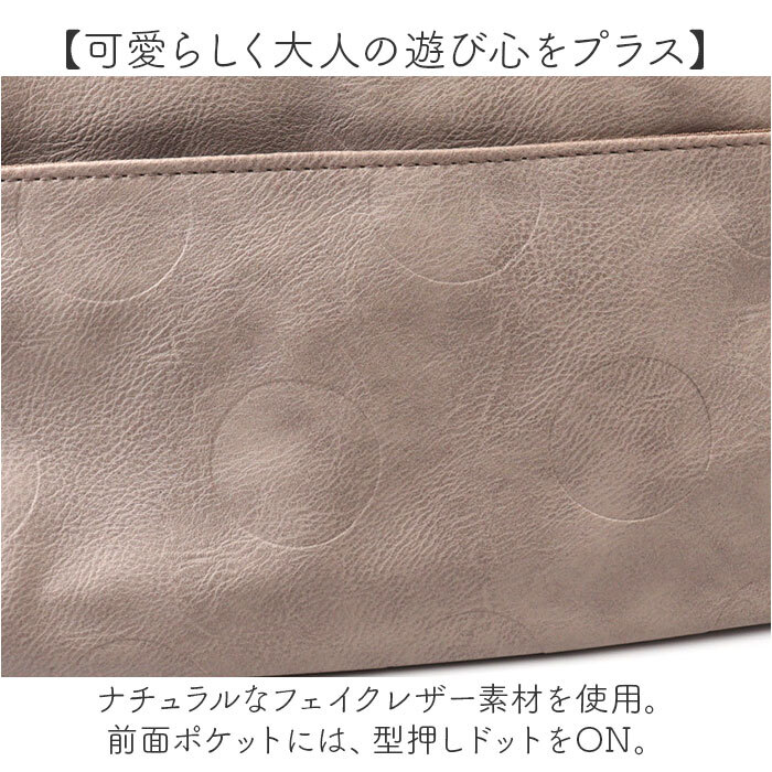 | 商品説明 | ・・【おしゃれに持てるお出かけの相棒】 ・使いやすいサイズ&デザインにもこだわった「Lafiel ドットカラーミニトート」。 ・【目を惹くユニークなフォルム】 ・サイドから見ると、上部にかけて締まった三角形のシルエット。ふっくら立体的なカタチが特徴。 ・【可愛らしく大人の遊び心をプラス】 ・ナチュラルなフェイクレザー素材を使用。前面ポケットには、型押しドットをON。 ・【マグネットボタンでワンタッチ開閉】 ・力いらずで簡単◎ガバっと開いて出し入れしやすく、閉じれば中身のこぼれ落ちもガード。 ・【小さく見えて必要な物はしっかりと】 ・サッと持ち出せるサイズ。横幅を広く設け、長財布やペットボトル等マストアイテムがスッキリ。 ・(※)A5サイズを収納すると、開口部が閉まりません。 ・【安定感があり型崩れもガード】 ・安定した状態で持ち運びでき、容量もキープできるマチ広設計。 ・【サクッと取り出せて迷子知らず】 ・合計4つのポケットを配置。使用頻度の高い物も、バッグの中で探す手間が不要。 ・【サスティナブルなバッグ♪】 ・素材の一部には、環境に優しいリサイクル生地を使用。エコにも貢献できるアイテム。 ・【トレンドに左右されず長く愛用】 ・年代や流行問わず持ちやすいデザインと、カラーリング。贈り物にもおすすめ。 ・【ポケット仕様】 ・内側:ファスナーポケット×1、オープンポケット×2 ・前面:オープンポケット×1 |