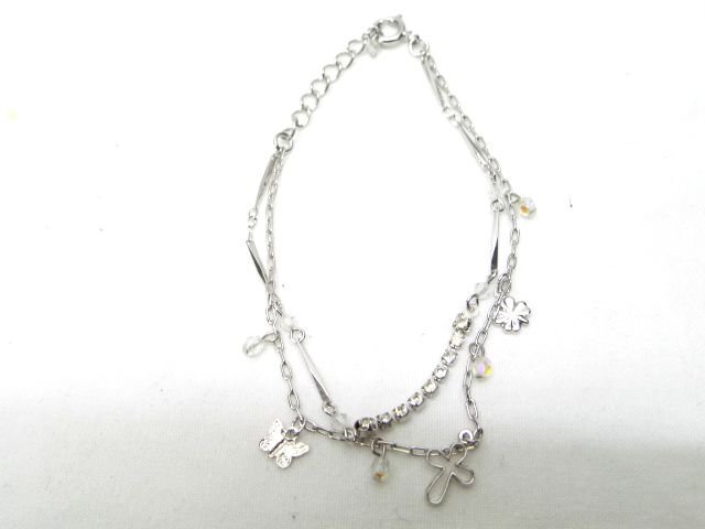 ブレスレット★花柄/クロス/シルバー/ラインストーン【中古】K240820TK-13